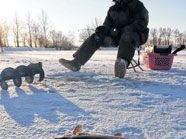 Eisfischen Bei Oravi, einer kleinen Ortschaft am malerischen Saimaasee in Finnland, wird den ganzen Winter über eine knapp 50 Kilometer lange Eisbahn auf dem See extra für die Eisfischer und andere Aktivitäten freigeräumt. Diese riesige Eisfläche ist inzwischen schon so populär, dass Oravi im eislaufverrückten Holland zu einem beliebten Reiseziel im Winter geworden ist.