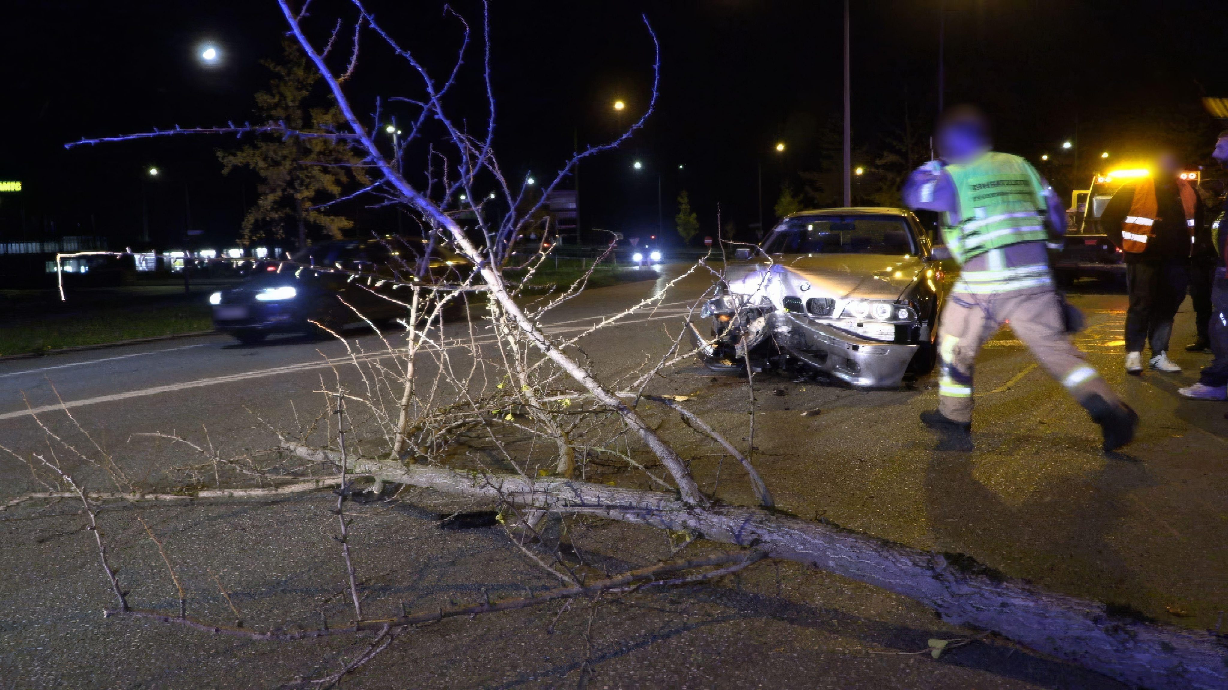 Auto prallt gegen Baum: Unfall beim Messepark-Kreisverkehr