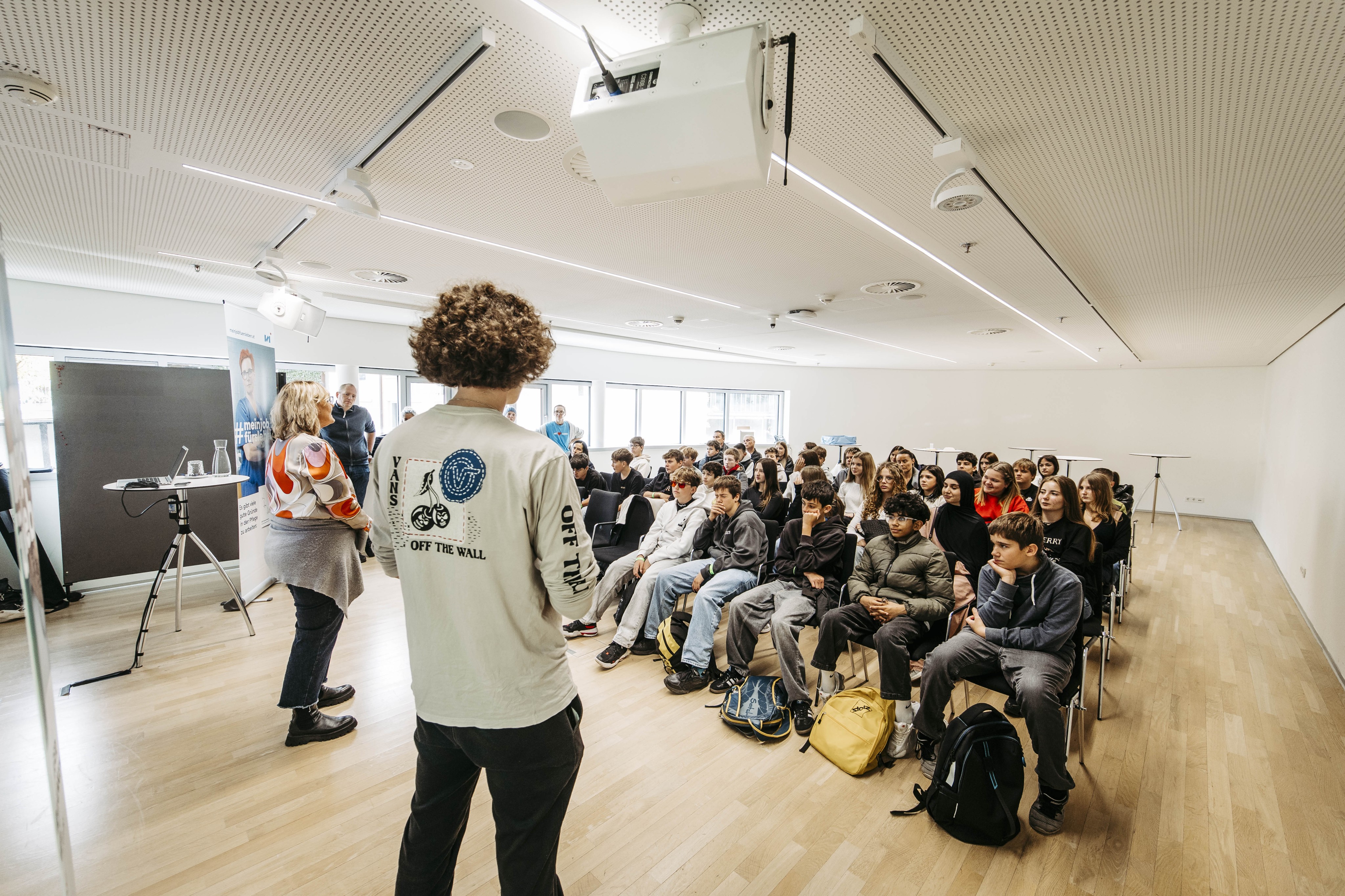 In den anschließenden Breakout-Sessions konnten die Jugendlichen verschiedene Berufsfelder kennenlernen. illwerke vkw und die Vorarlberger Landeskrankenhäuser gaben Einblicke in ihre Arbeitswelten. Besonders am Stand der Pflegeschule Vorarlberg herrschte reges Interesse: Hier konnten die Teilnehmenden praktische Tätigkeiten ausprobieren und den Berufsalltag in der Pflege hautnah erleben.