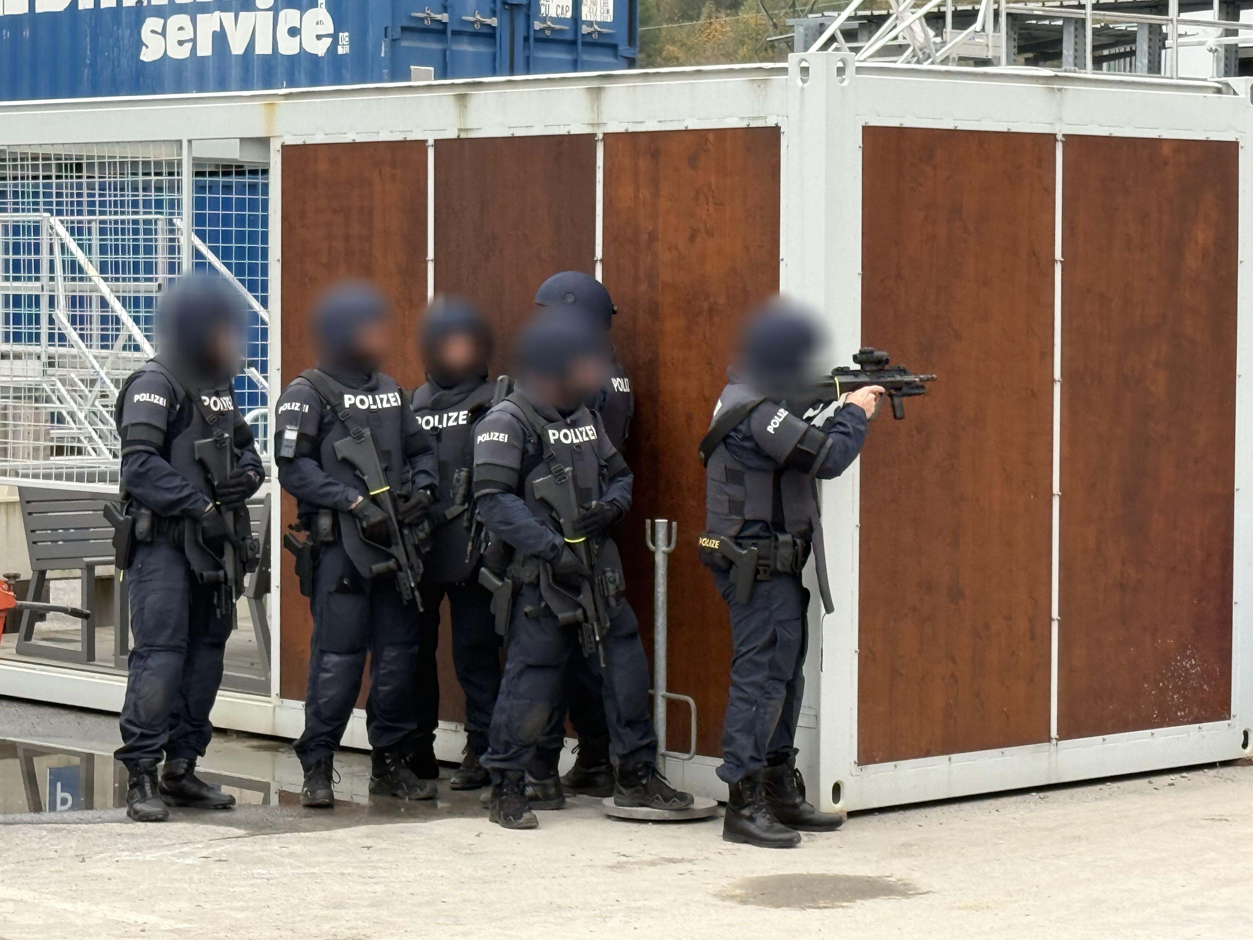 Trainiert wurden Szenarien mit bewaffneten Tätern und Gefahrenlagen, die eine schnelle und koordinierte Reaktion erfordern. "Das heißt, wir haben Szenarien, wo sich Täter mit Schusswaffen und Messer ausgestattet haben", schilderte Bihlmayer. In einem weiteren Übungsteil wurde ein Fahrzeugbrand inszeniert, bei dem die Zusammenarbeit mit der Betriebsfeuerwehr getestet wurde.