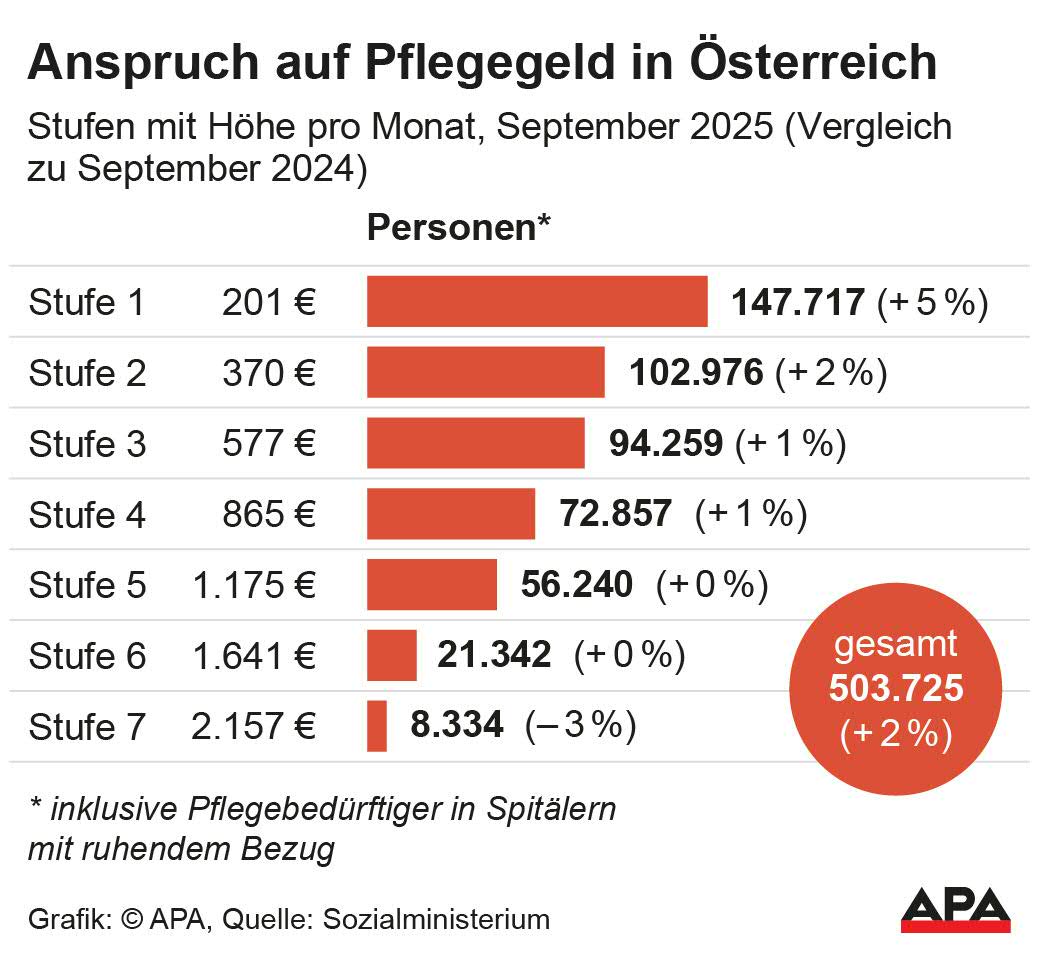 Already in May - when the 500,000 mark was first exceeded - the Ministry of Social Affairs, led by Minister Korinna Schumann (SPÖ), stated that demographic change and increasing life expectancy would also be reflected in the rising number of eligible individuals and in the development of care allowance applications. She positively highlighted at the time that the annual valorization of the monetary benefit by the adjustment factor could be secured despite budgetary pressures.