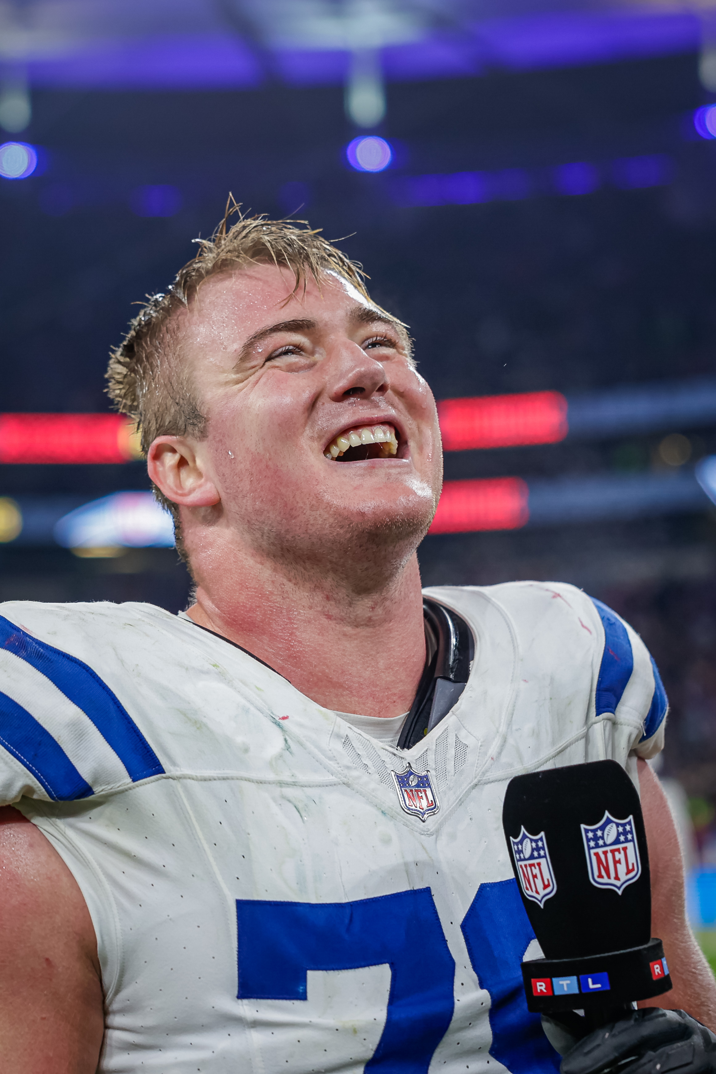 Bernhard Raimann nach einem Spiel seiner Colts gegen die New England Patriots in Frankfurt