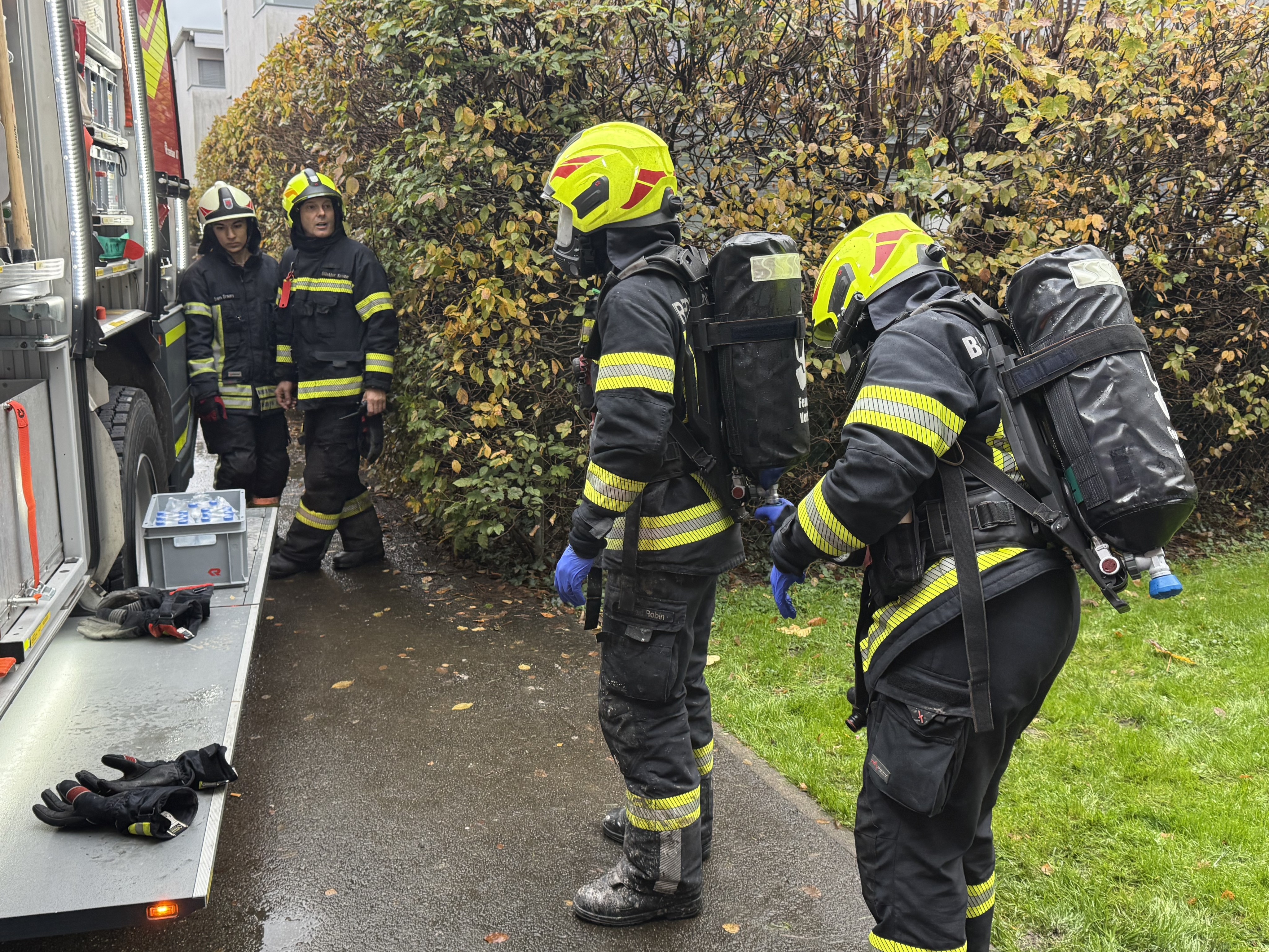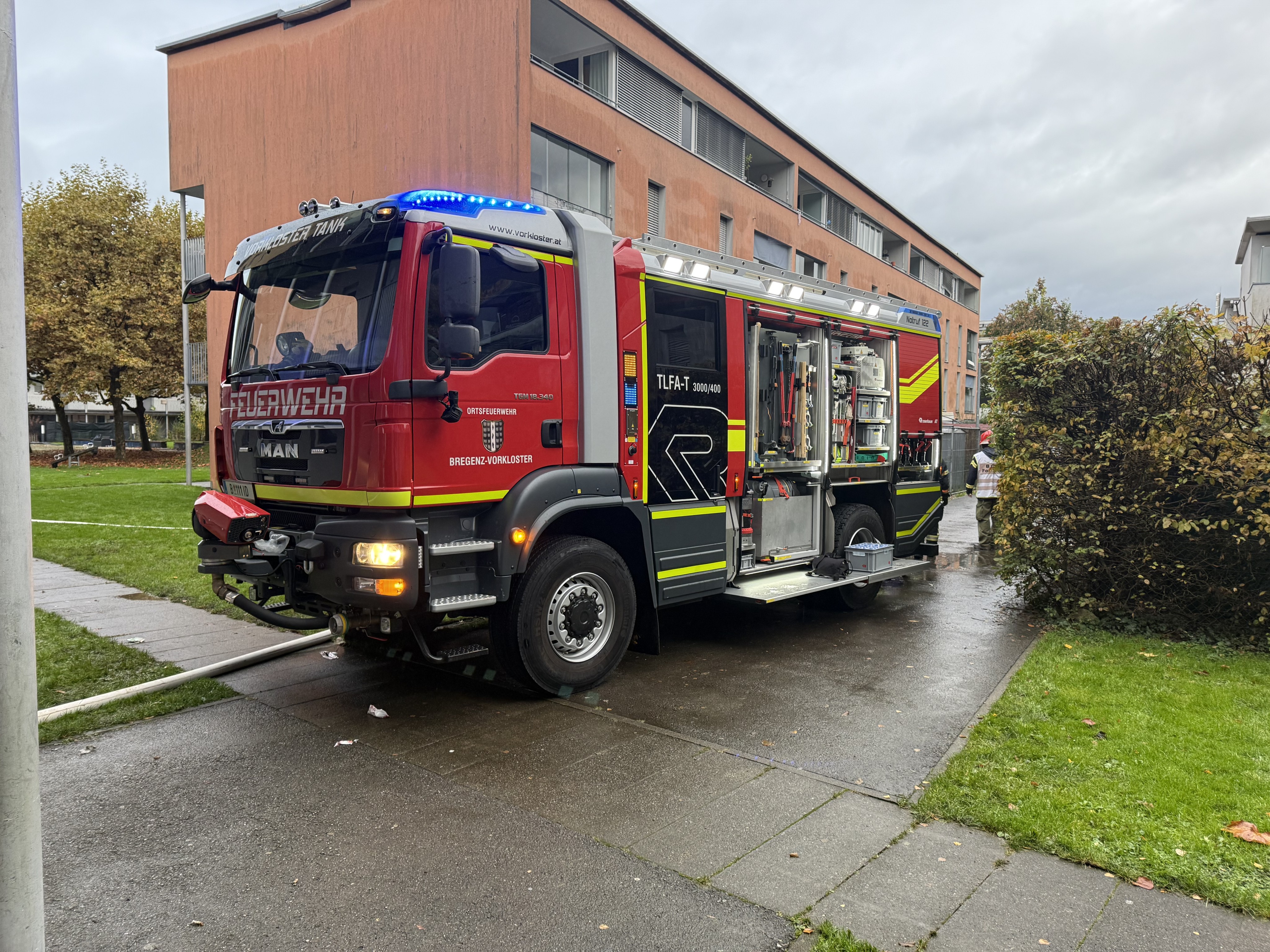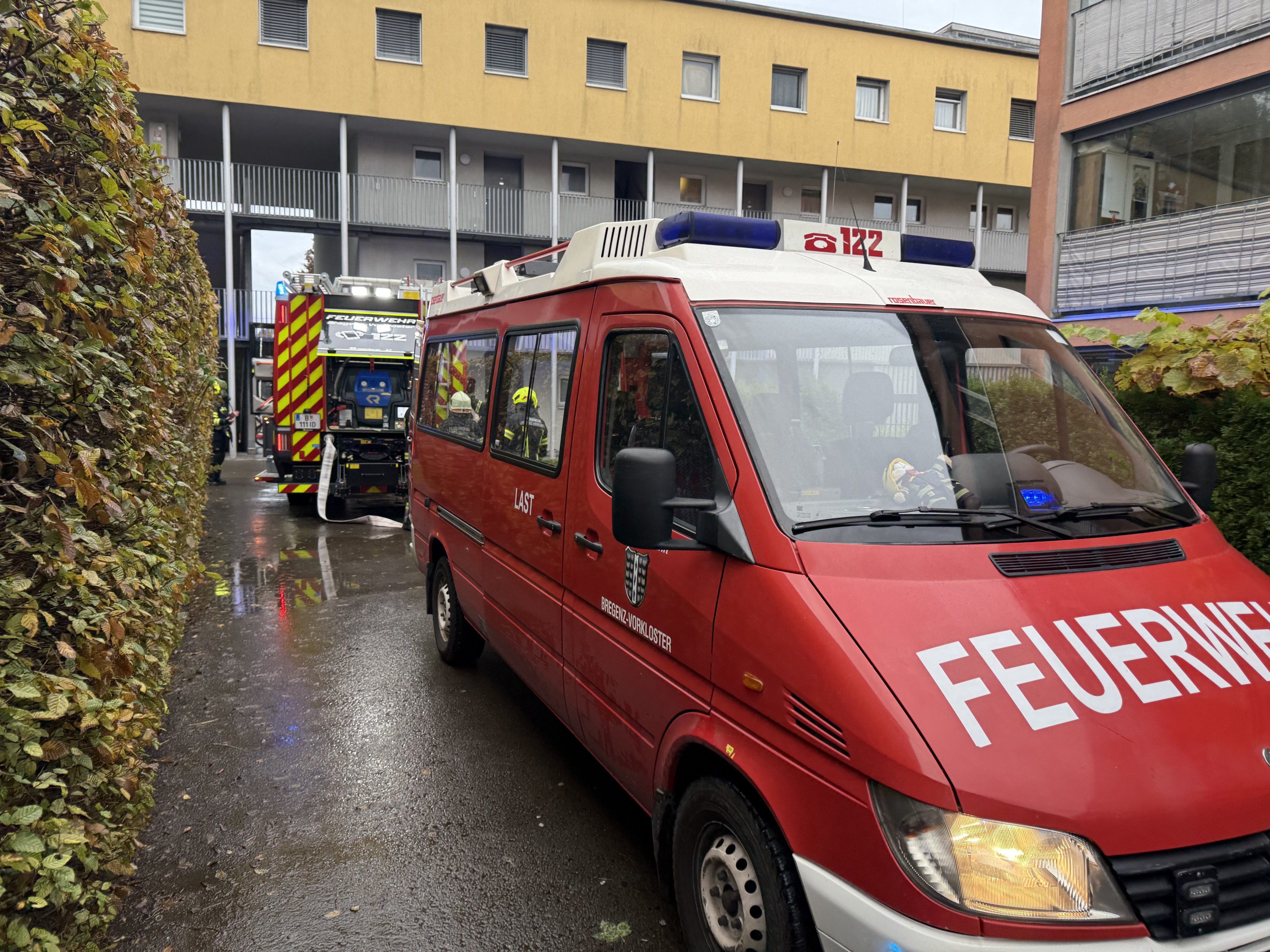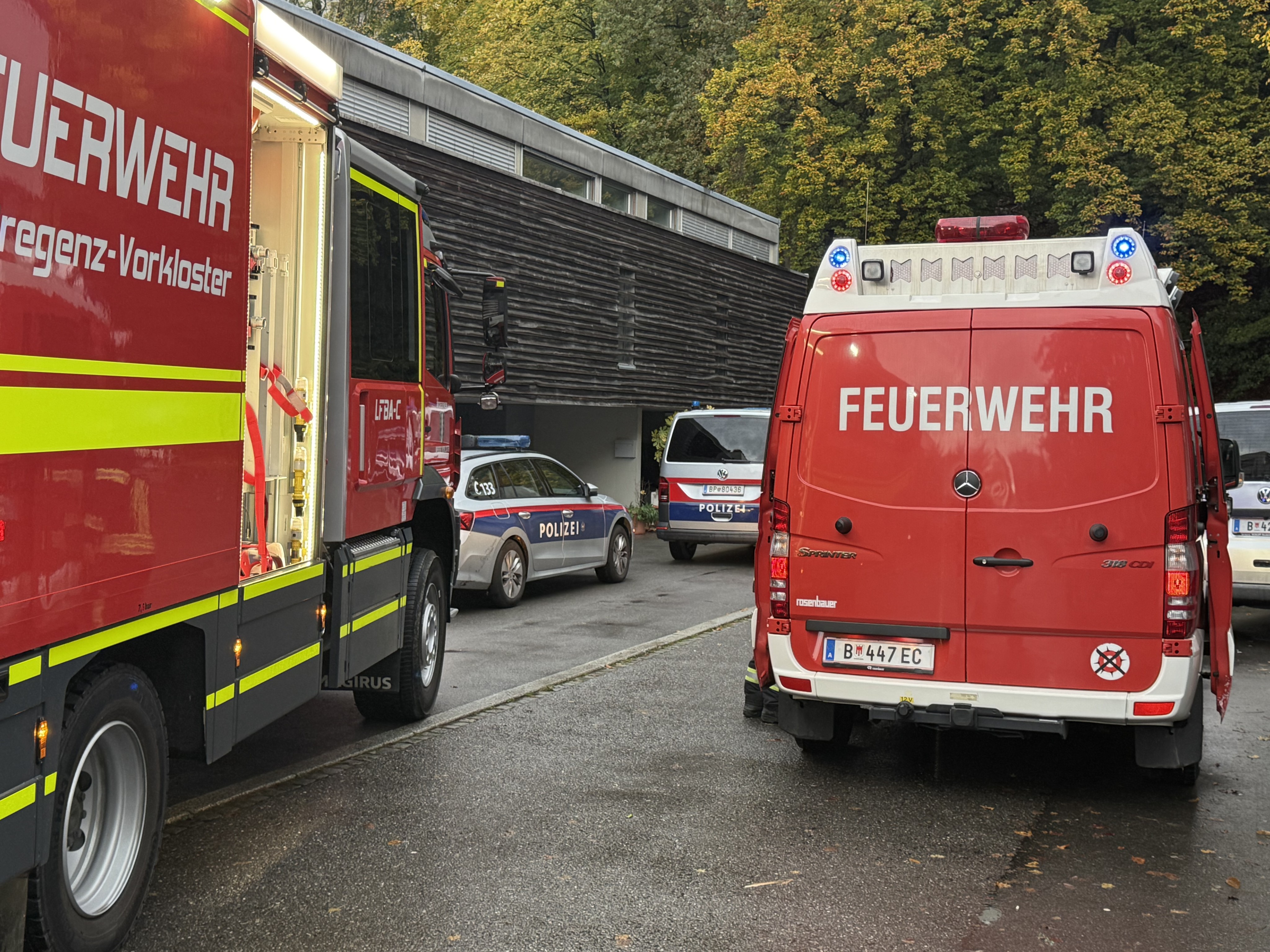 - Feuerwehren Bregenz Vorkloster und Bregenz Stadt mit acht Fahrzeugen und 47 Feuerwehrleuten