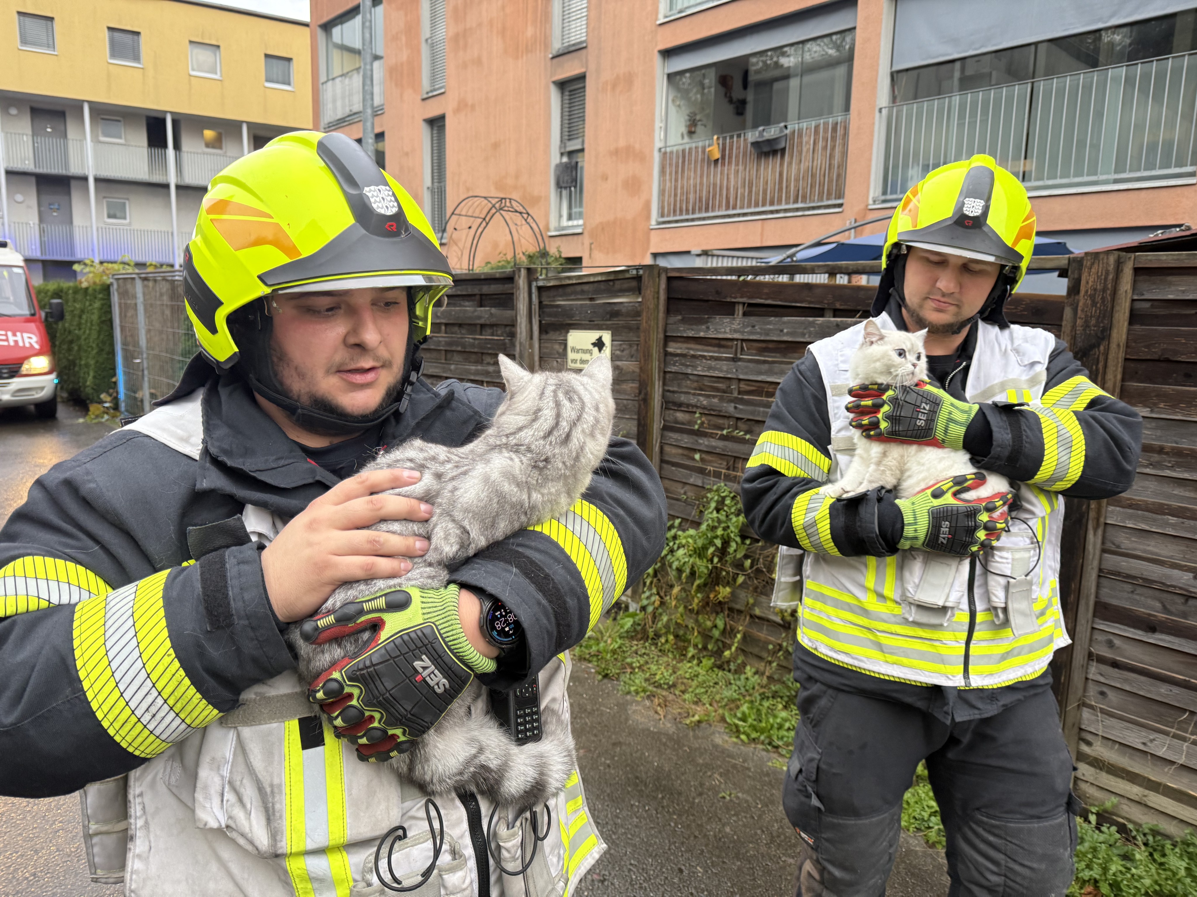 In der betroffenen Wohnung befanden sich noch drei Katzen, die von den Feuerwehrleuten gerettet werden konnten. Aufgrund der starken Rauchentwicklung wurde das gesamte Gebäude vorsorglich evakuiert. "Die Rettung baute ein Schnelleinsatzzelt auf, damit die Personen im Warmen bleiben konnten", erklärte Jäger.