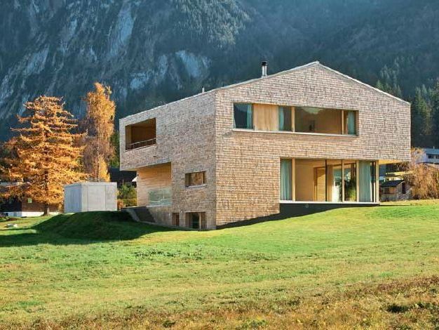 Die Jury lobte die klare Ausrichtung des Wohnhauses auf das großartige Panorama. Die Bergwelt des Bregenzerwaldes spiegelt sich in der traditionellen Weißtannenschindel-fassade, und auch das Innere bezieht sich mit Holzoberflächen auf den natürlichen Reichtum der Region. Der in Passivhausbauweise konzipierte Holzbau überzeugte außerdem durch Energieeffizienz und Nachhaltigkeit. Die junge Bauherrnfamilie wünschte sich ein naturverbundenes Einfamilienhaus, das sich in die Landschaft fügt, die Tradition der Region aufgreift und gleichzeitig den Anforderungen des Familienalltags gerecht wird. Nach diesen Vorgaben planten Jürgen Haller und Plattner Peter am Rand von Mellau, gleich neben dem naturgeschützten Moor am Dorfrand, ein kompaktes Holzschindelhaus mit Satteldach. Als ob es schon immer da gewesen wäre, reiht sich der Baukörper zwischen die benachbarten Holzschuppen und Bauernhöfe. Das Bergmassiv der Kanisfluh, dessen Spitze hoch über dem Dorf thront, rahmt die Szenerie und ist selbst in den Innenräumen präsent. Das große Sitzfenster in der Küche ist der Lieblingsplatz des Sohns. Er nutzt die niedrige Fensterbank zum Spielen und behält von hier aus das Geschehen rund um das Haus im Blick.