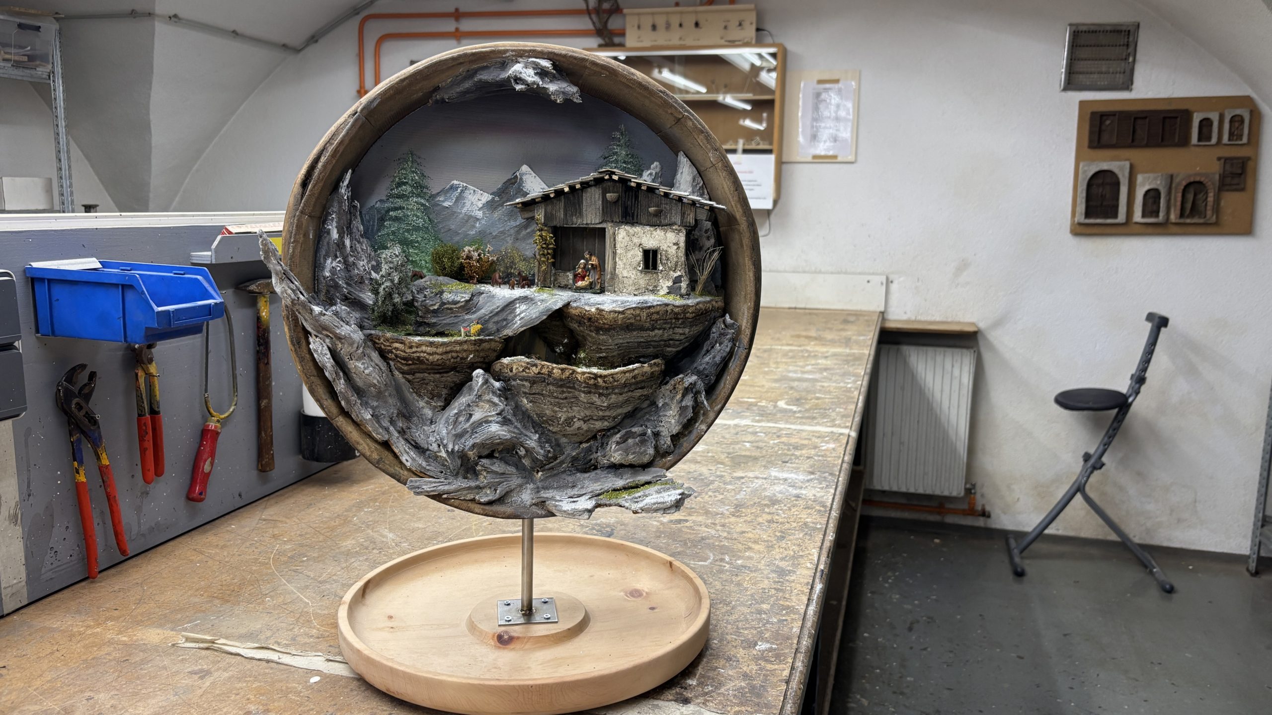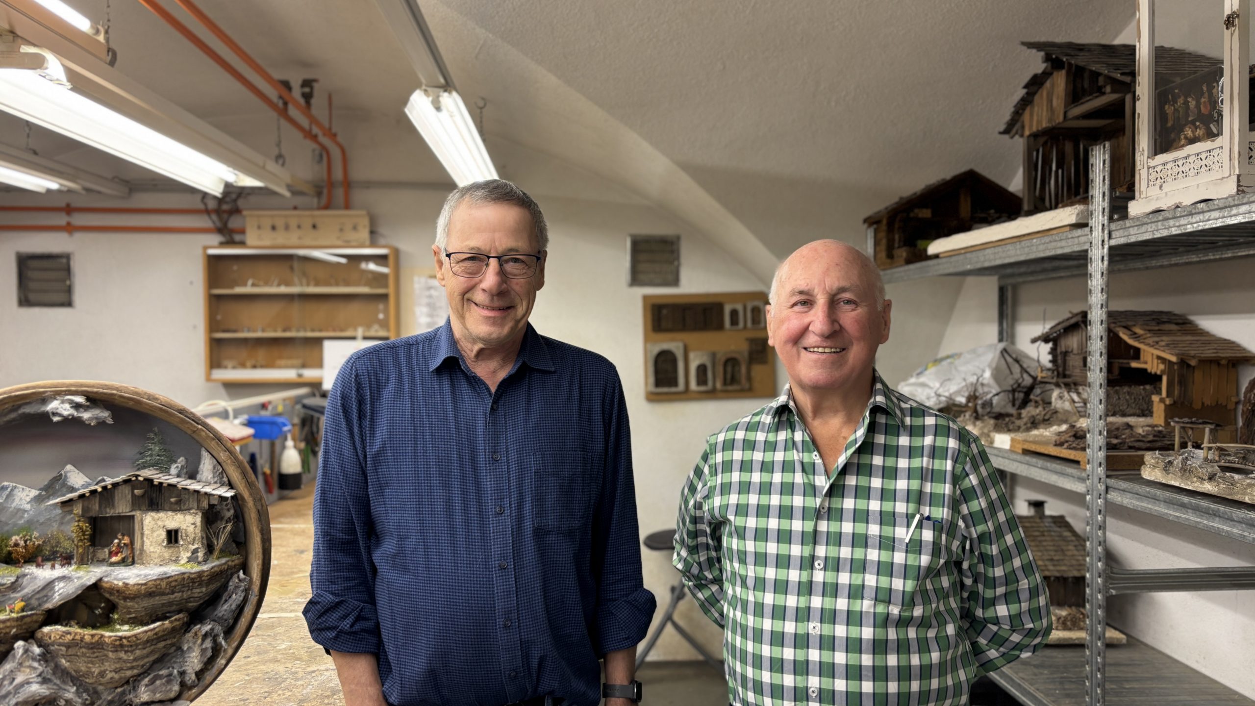 Eines der aktuellen Projekte des Vereins ist die neue Kirchenkrippe in der Kirche im Oberdorf: „Wir sollten die Kirchenkrippe im Oberdorf restaurieren, aber nach weiterer Begutachtung aber wir uns dazu entschieden, sie komplett neu zu bauen. Wir haben sie 1 zu 1 nachgebaut und die Krippe wird bei der Ausstellung zum ersten Mal der Öffentlichkeit präsentiert. Ebenso sind die Figuren, welche zu der Krippe gehören sind, fast einen Meter groß“.