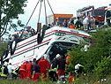 Die Bergungsarbeiten gestalteten sich schwierig, da der Bus hangabwärts lag. Die Rettungskräfte arbeiten unter schwersten Bedingungen, berichtete der Polizeisprecher. Am Abend wurden aus dem Bus geborgene Tote in Säcken in einen Lastwagen der Feuerwehr verladen. Zwei Kräne hoben den Bus an, damit die Einsatzkräfte zu den Opfern vordringen konnten. Jetzt steht die Identifizierung der Toten an. Zunächst hatte es da ein paar Unstimmigkeiten gegeben, sagte Polizeisprecher Frank Schubert. In der Nacht sollte außerdem mit der Bergung des verunglückten Fahrzeugs begonnen werden. Ob das klappt, hängt aber vom Wetter ab, betonte der Sprecher.