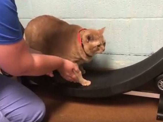 Der Kater Symba aus den USA wiegt mit seinen 16 Kilogramm mehr als ein Löwenbaby und muss dringend abnehmen. Das Video, das den Kater bei seinen ersten Versuchen auf dem Laufband zeigt, geht viral.