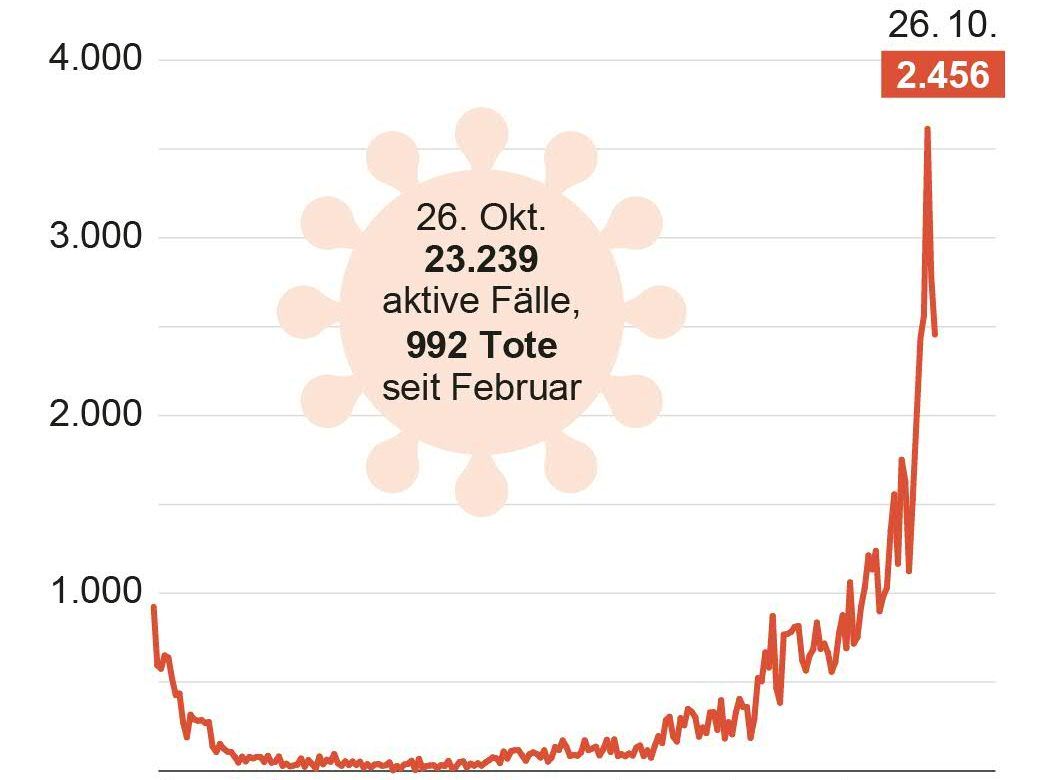 Die Zahl der aktiv Erkrankten liegt den nach Zahlen von Gesundheits- und Innenministerium (Stand: 9.30 Uhr) jetzt auf 23.239 - ein Anstieg von 8.575 innerhalb einer Woche.