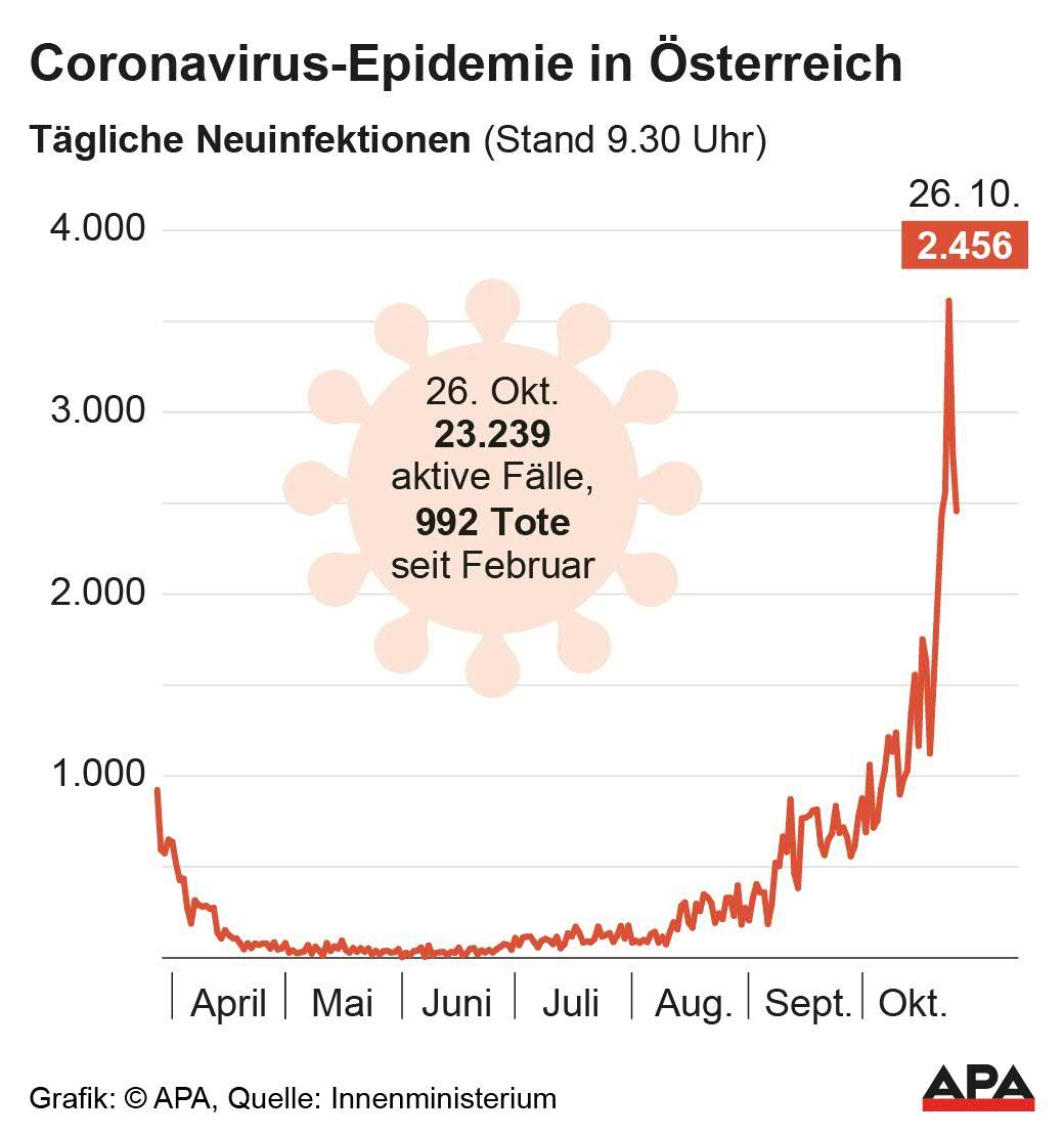2.456 Corona-Neuinfektionen in Österreich