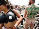 England - Mehr als 200 Menschen sind am Samstag nackt durchs südenglische Seebad Brighton geradelt, um für das Fahrrad als umweltfreundliches Transportmittel zu werben.