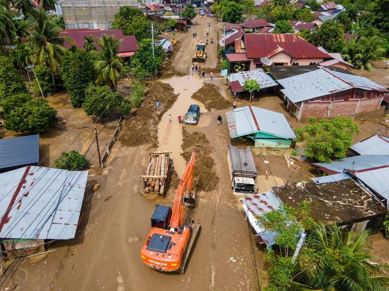 Unaufhörliche starke Regenfälle hatten zuvor Flüsse zum Überlaufen gebracht und Sturzfluten sowie Schlammlawinen ausgelöst, die durch ganze Dörfer fegten. Viele Häuser, Straßen und Brücken auf der sechstgrößten Insel der Welt wurden beschädigt. Retter waren mit Hubschraubern im Einsatz, um Hilfsgüter in isolierte Regionen und Menschen in Sicherheit zu bringen. In der Monsunzeit zwischen November und März kommt es in Teilen Indonesiens häufig zu schweren Überschwemmungen.