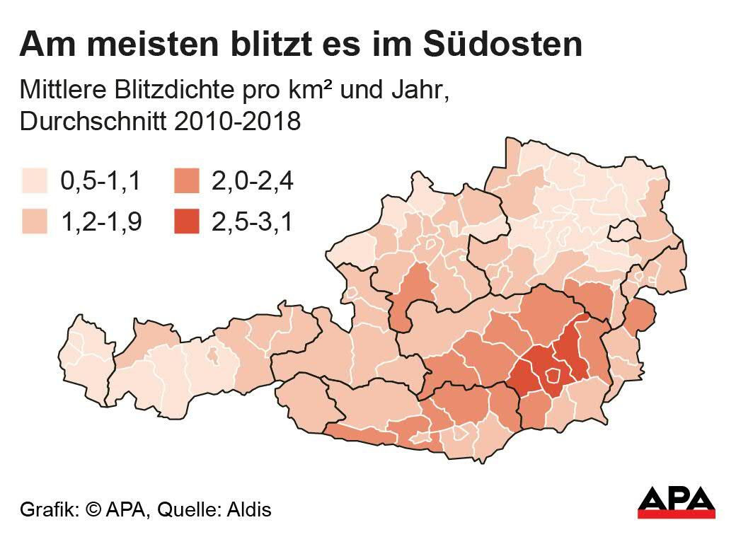 Die Zahl der Blitze in Österreich schwankt von Jahr zu Jahr stark und liegt meist zwischen 100.000 und 200.000 Blitzeinschlägen in den Boden pro Jahr. Rechnet man zu den Einzelentladungen in den Wolke-Erde Blitzen auch die Wolke-Wolke-Entladungen dazu, gibt es in Österreich pro Jahr durchschnittlich zwischen 700.000 und 800.000 Entladungen.