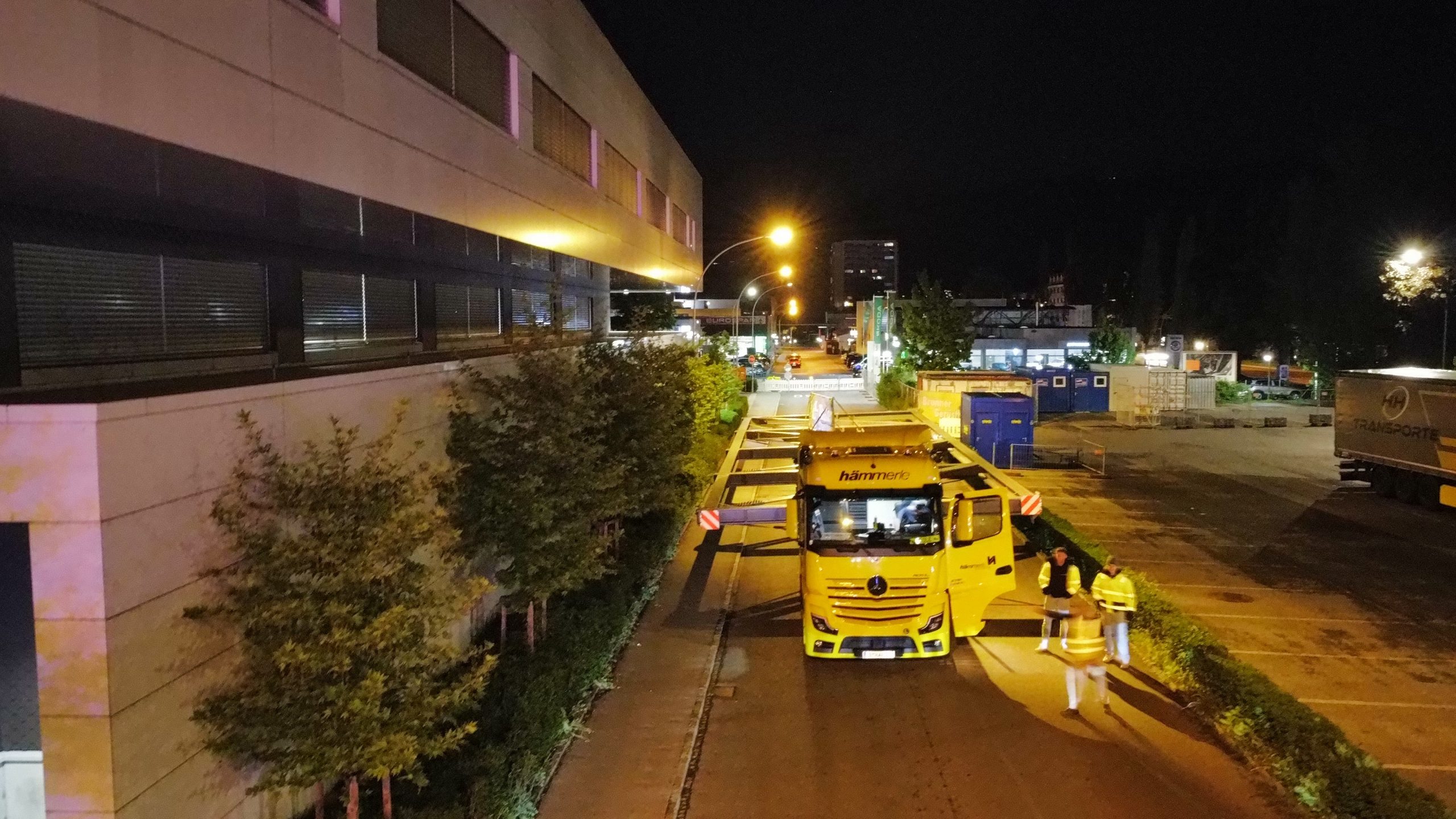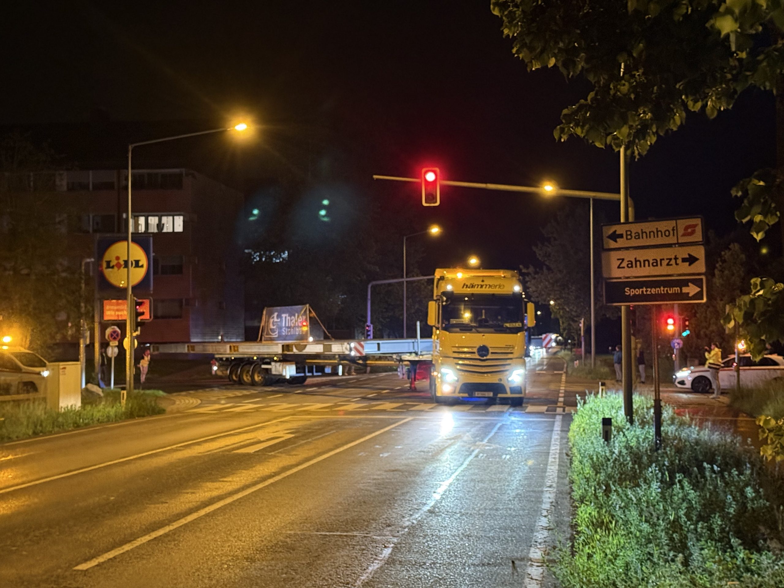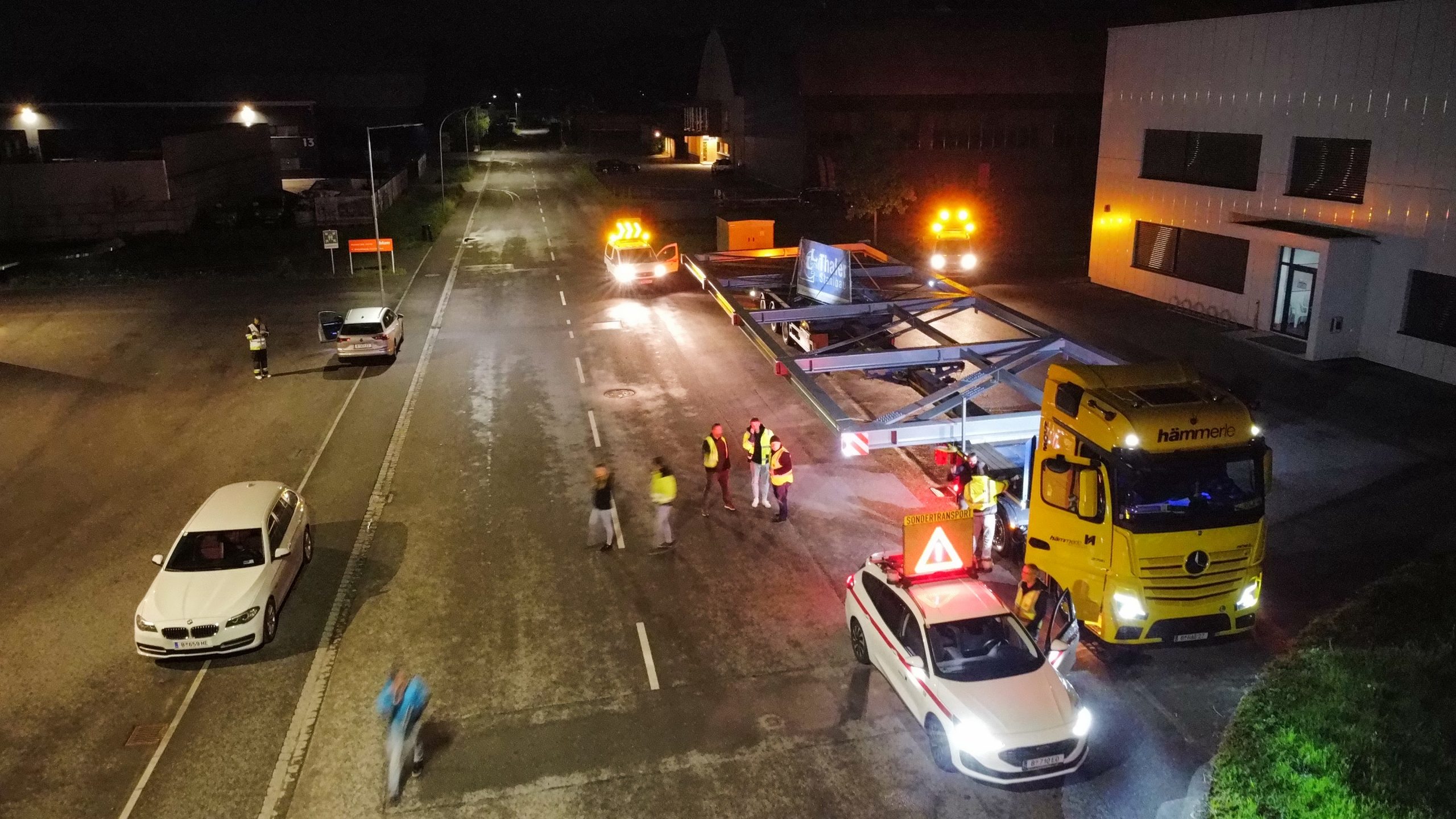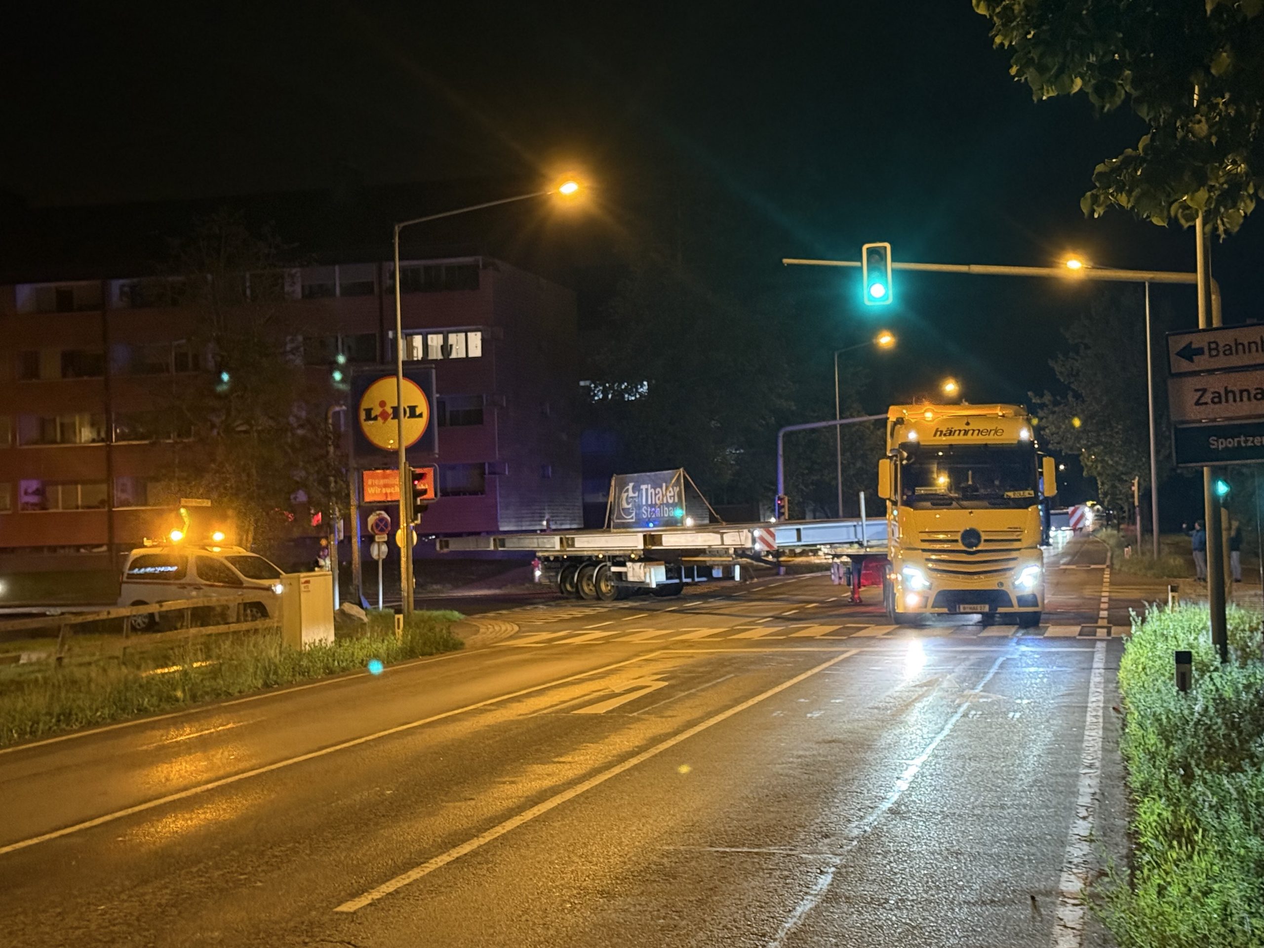 Nach monatelanger Planung verließ das tonnenschwere Stahlfachwerk am Montagabend um 22 Uhr das Werk in Hard. Die große Herausforderung war, die Konstruktion so zu dimensionieren, dass sie auf öffentlichen Straßen transportiert werden kann. Den Spezialtransport übernahm das Harder Unternehmen Hämmerle Transporte.