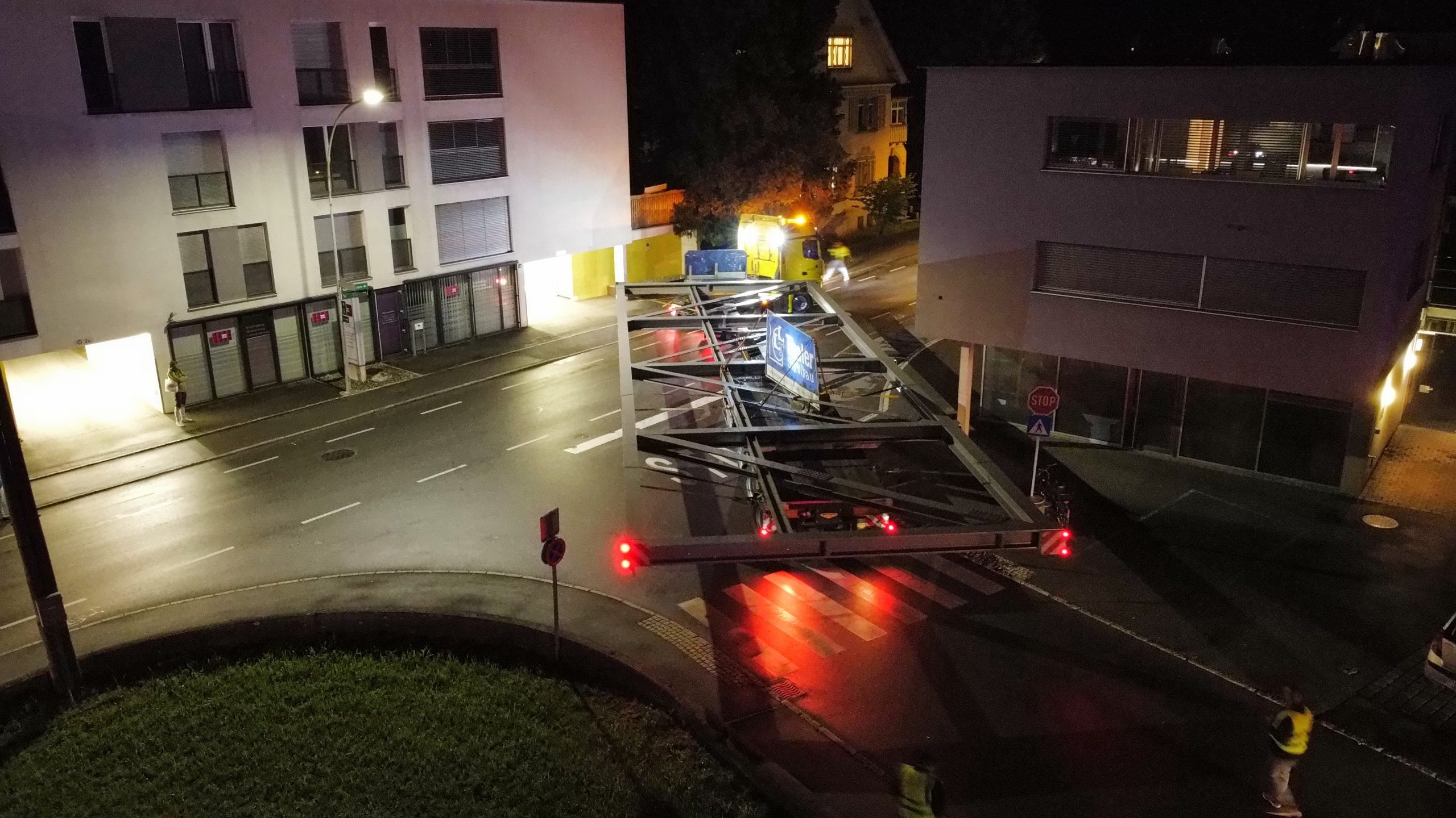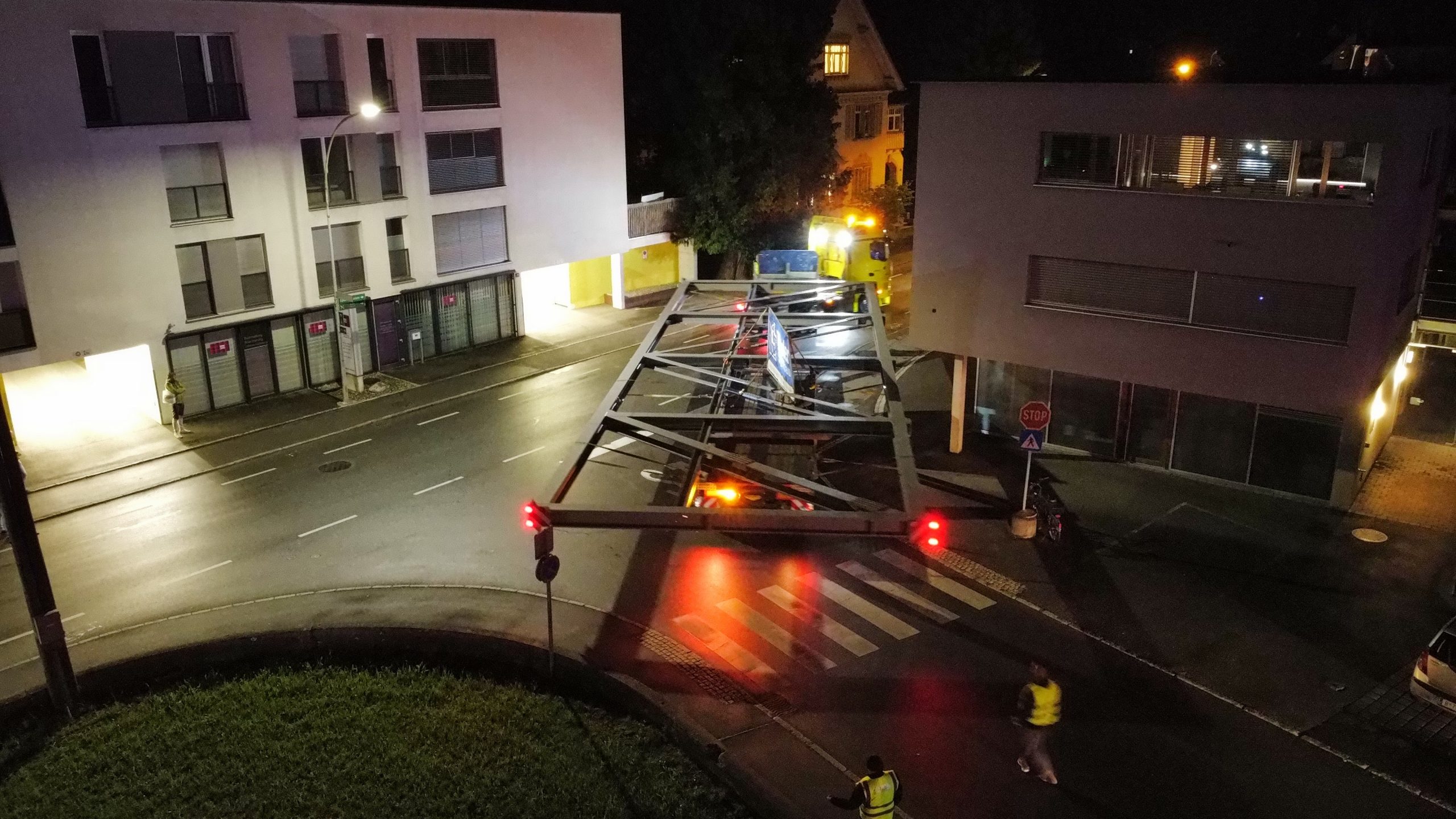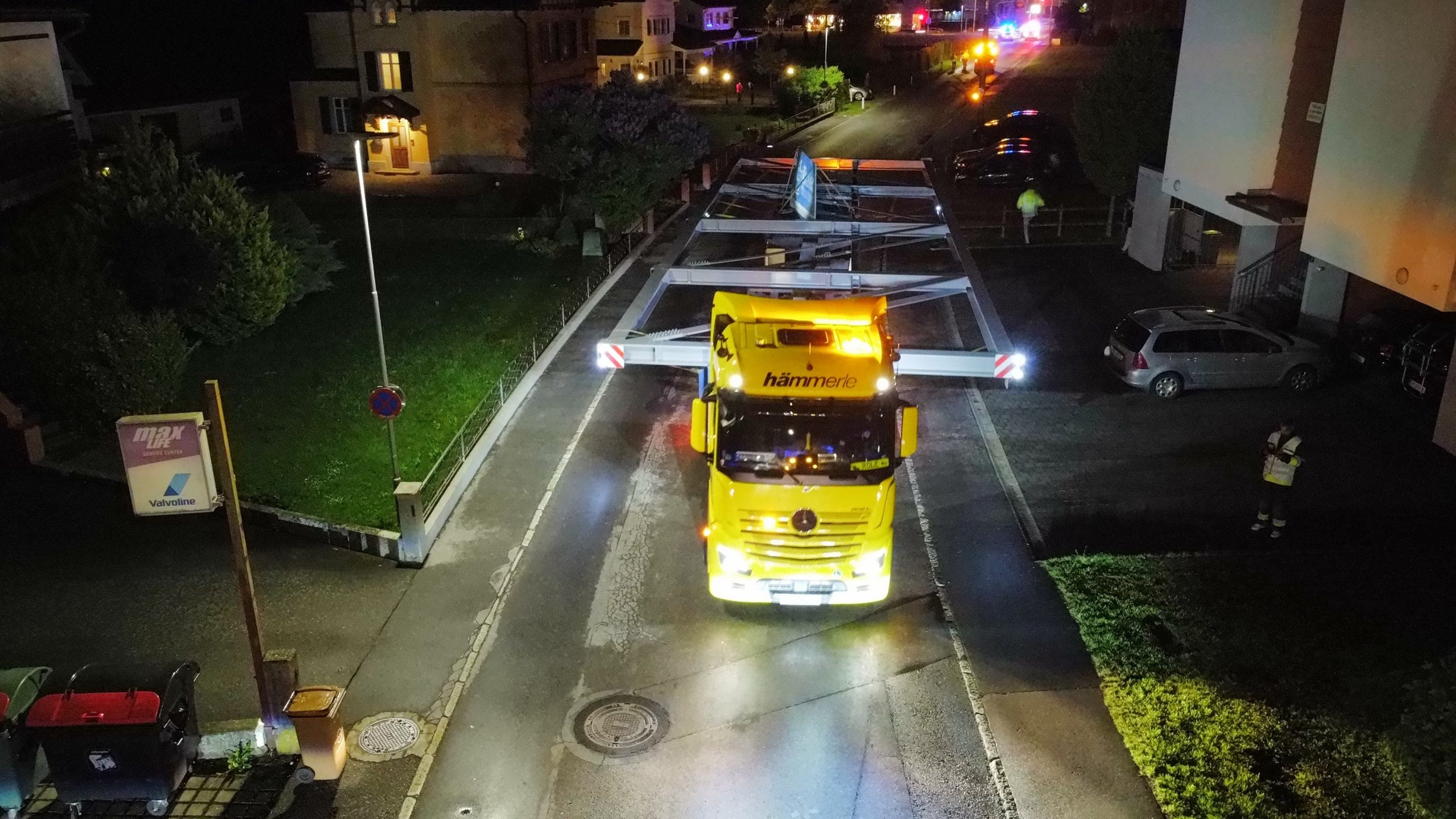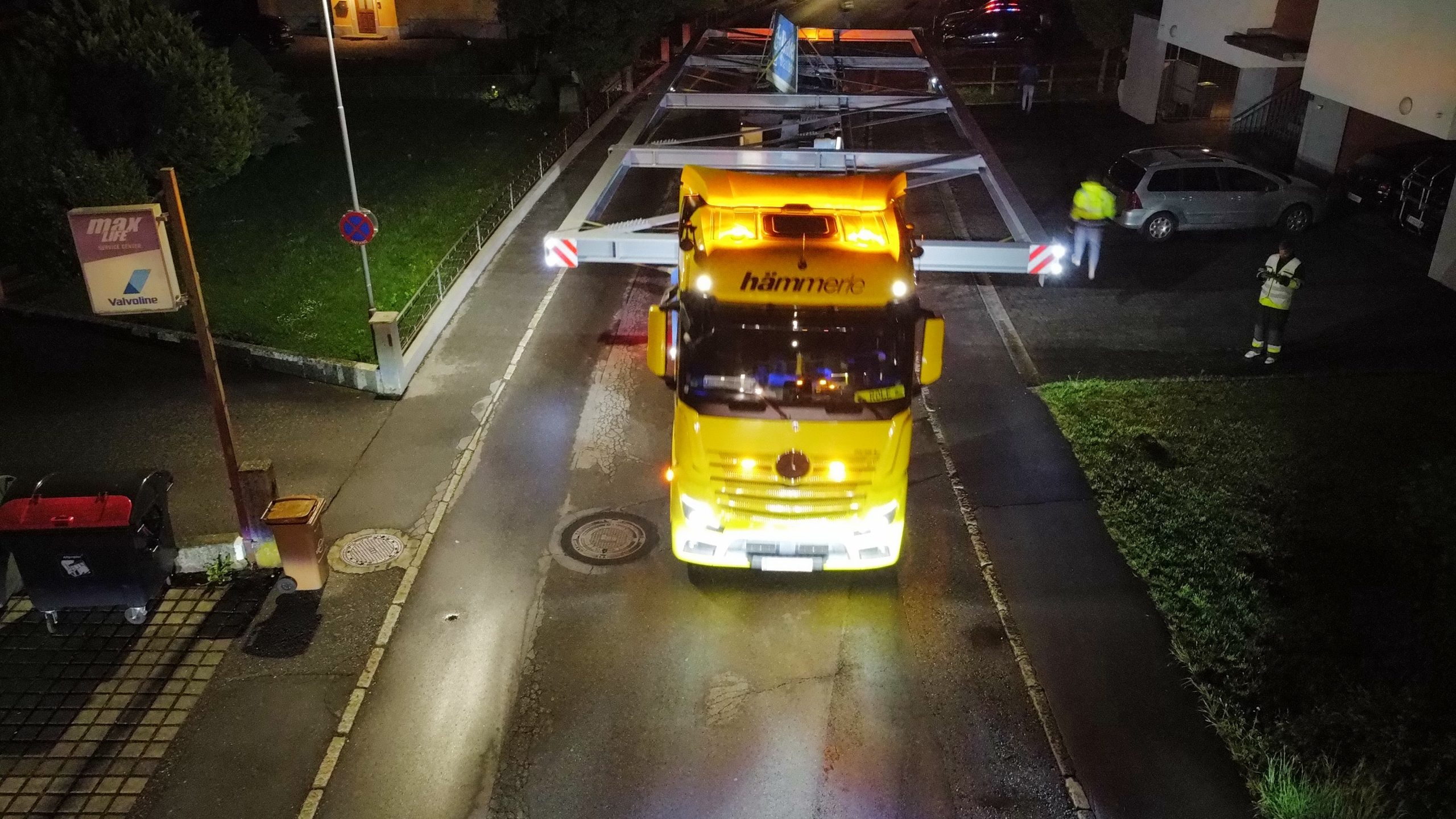 Nach monatelanger Planung verließ das tonnenschwere Stahlfachwerk am Montagabend um 22 Uhr das Werk in Hard. Die große Herausforderung war, die Konstruktion so zu dimensionieren, dass sie auf öffentlichen Straßen transportiert werden kann. Den Spezialtransport übernahm das Harder Unternehmen Hämmerle Transporte.
