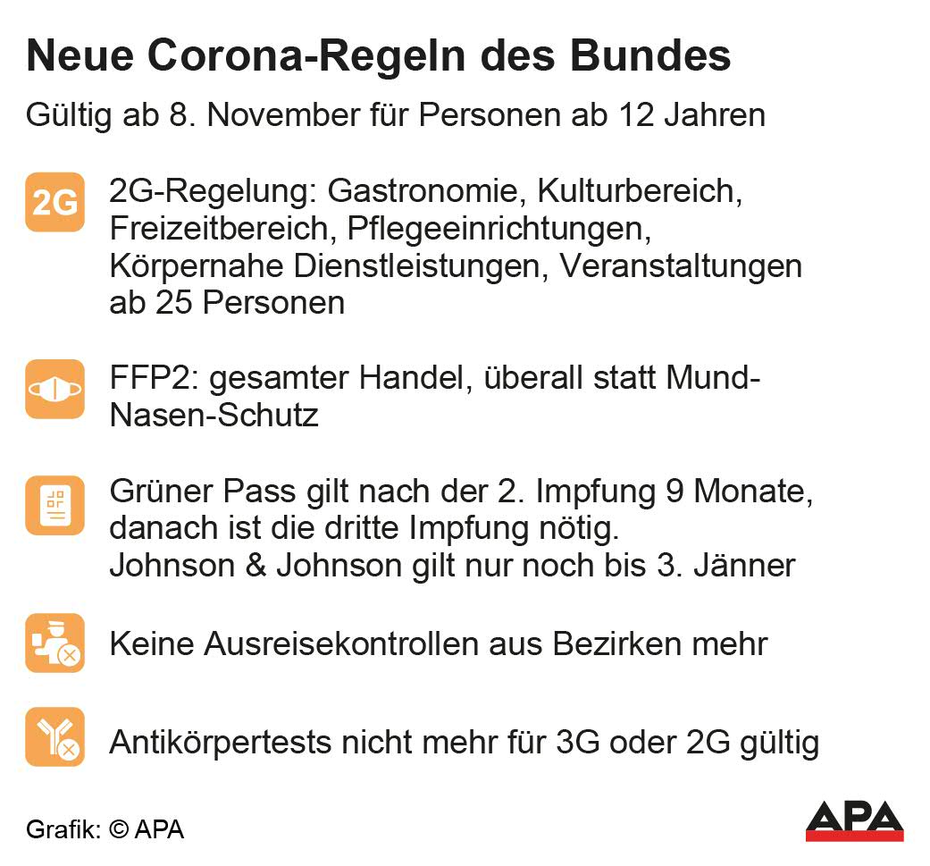 Mehr oder weniger nur noch in den Handel oder zur Arbeit kann man auch mit einem negativen Corona-Test oder "ohne G". Im Folgenden die neuen 2G-Regeln, so weit sie schon vor Vorlage der dazu gehörigen Verordnung (am Wochenende) klar sind.