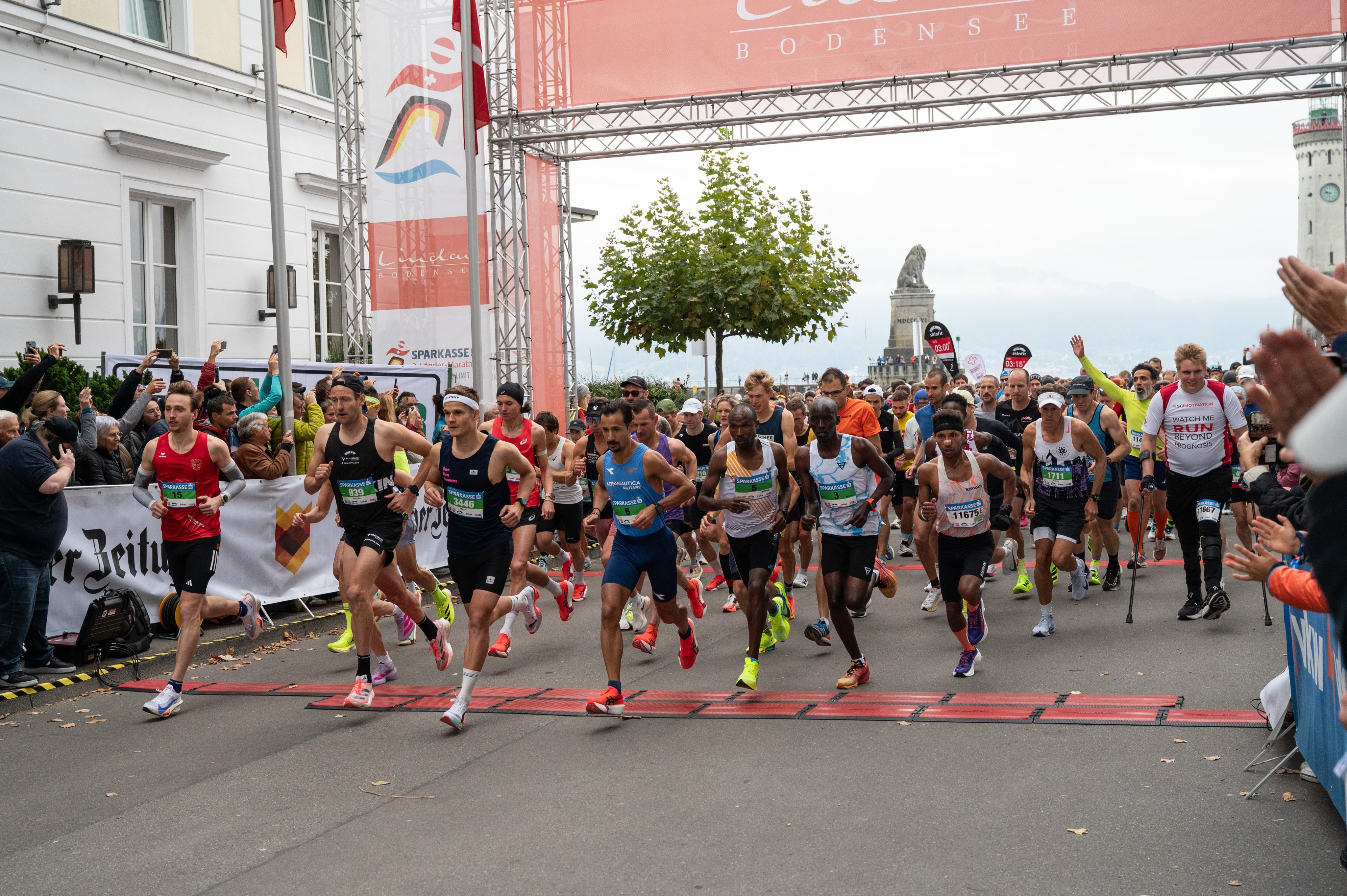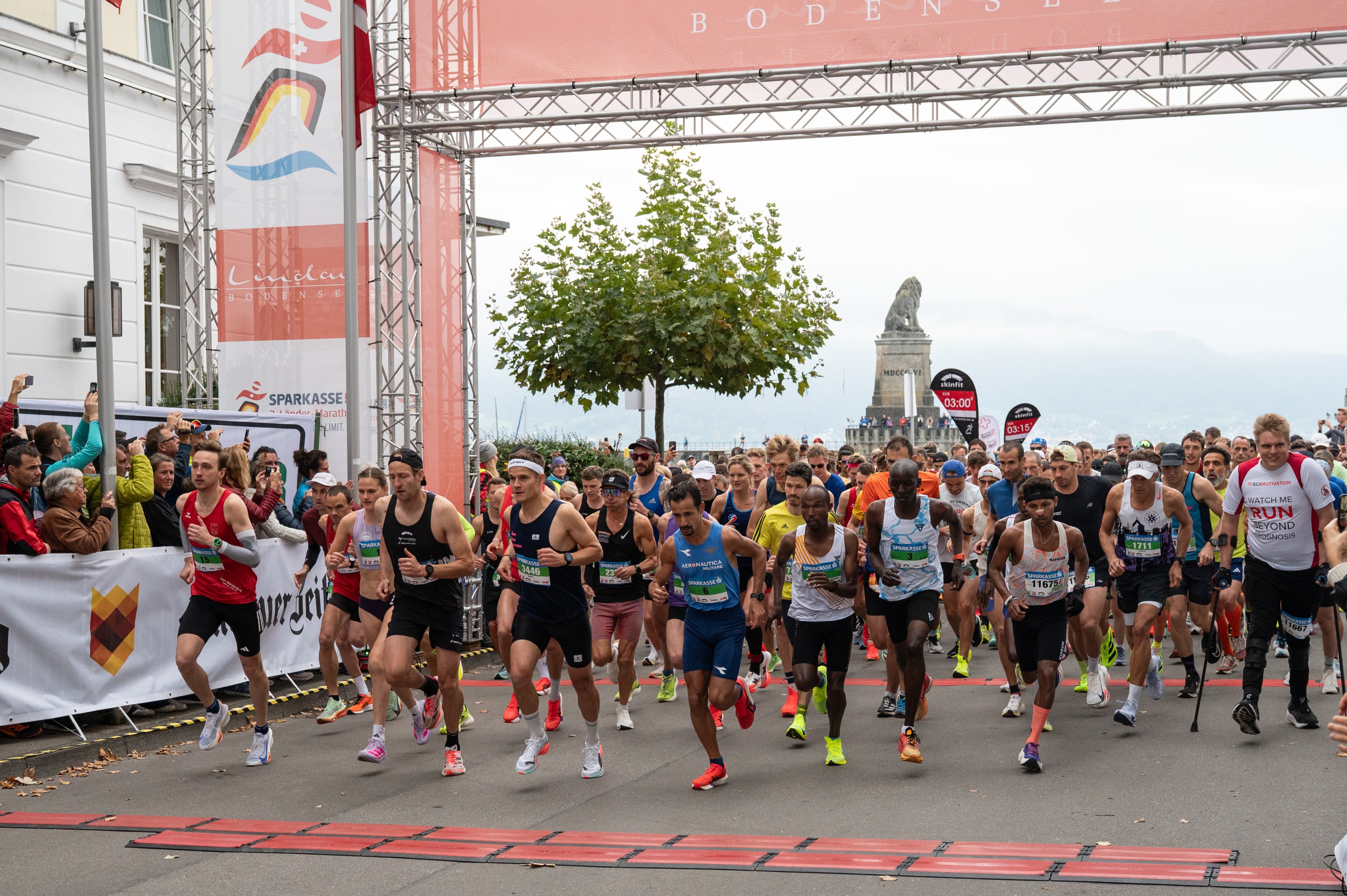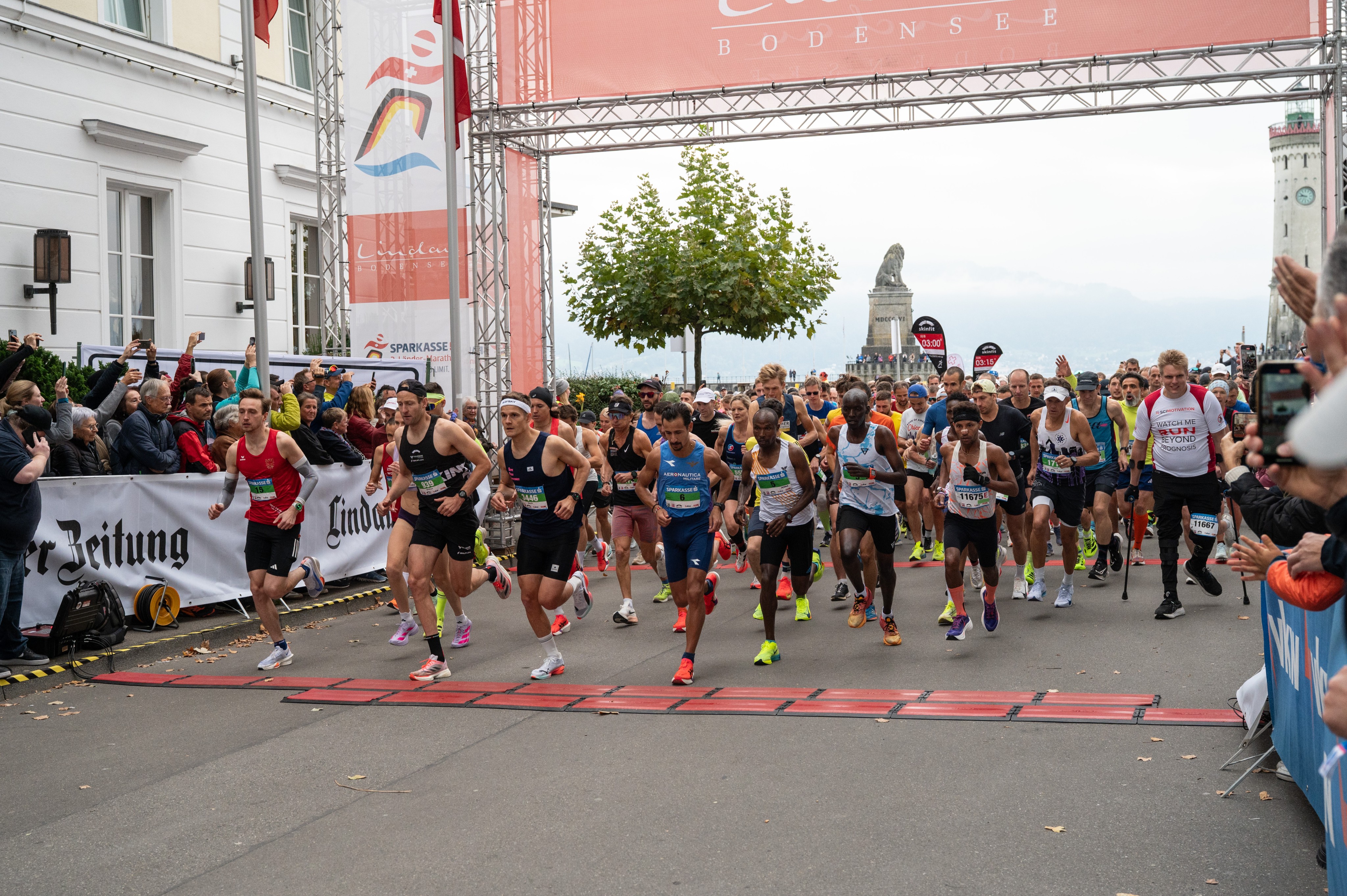 Mehr als 12.000 Läuferinnen und Läufer hatten sich für den 3-Länder-Marathon am Bodensee angemeldet – so viele wie noch nie. Der Start erfolgte am Sonntagmorgen um 9.45 Uhr in Lindau, die schnellsten Läufer wurden etwa zwei Stunden später im Ziel im Stadion in Bregenz erwartet.