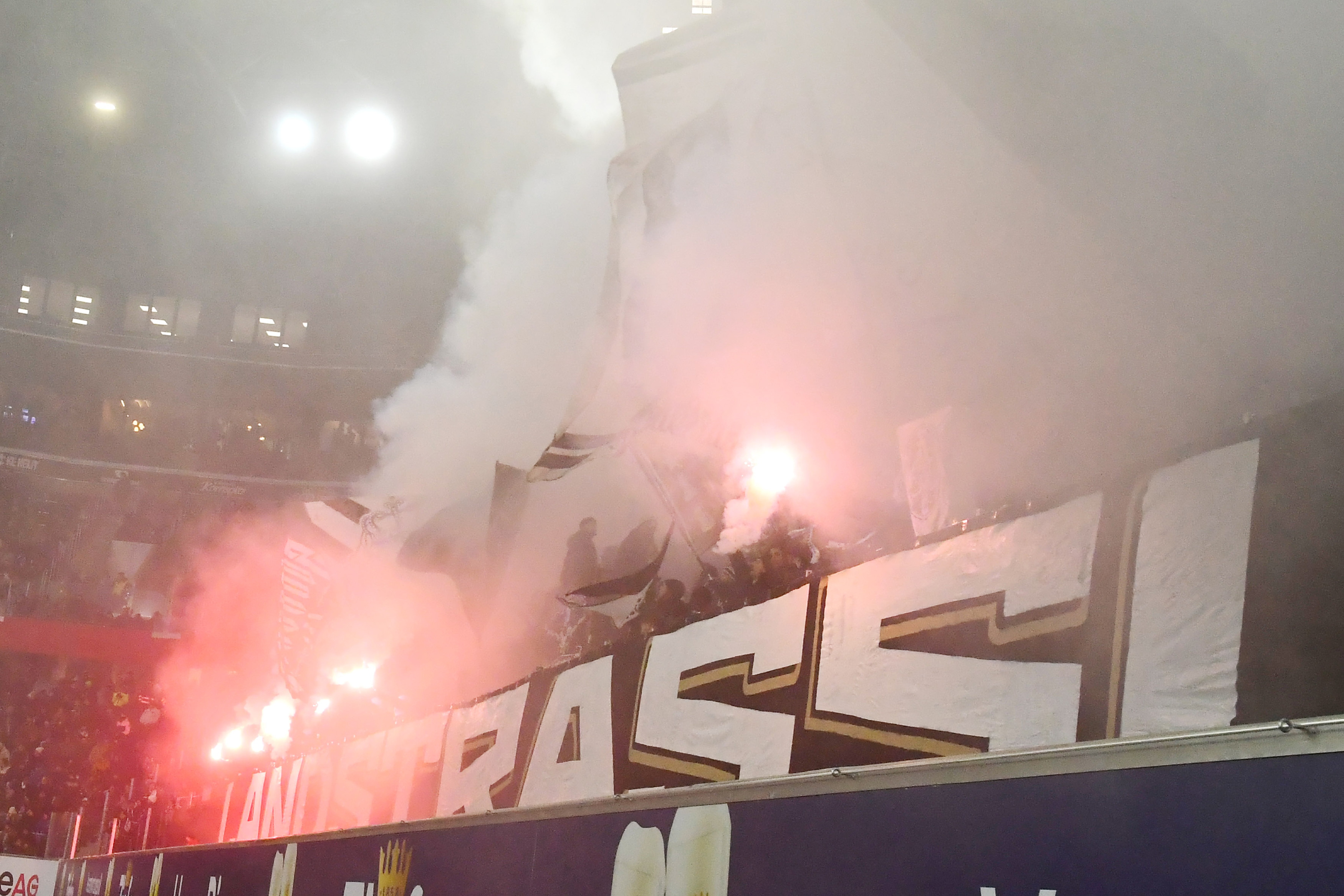 The match at the Raiffeisen Arena, in front of 16,263 spectators, had to be interrupted twice due to massive use of pyrotechnics in the stands – first for nine minutes, then for six minutes. Visibility in the stadium was severely restricted at times.