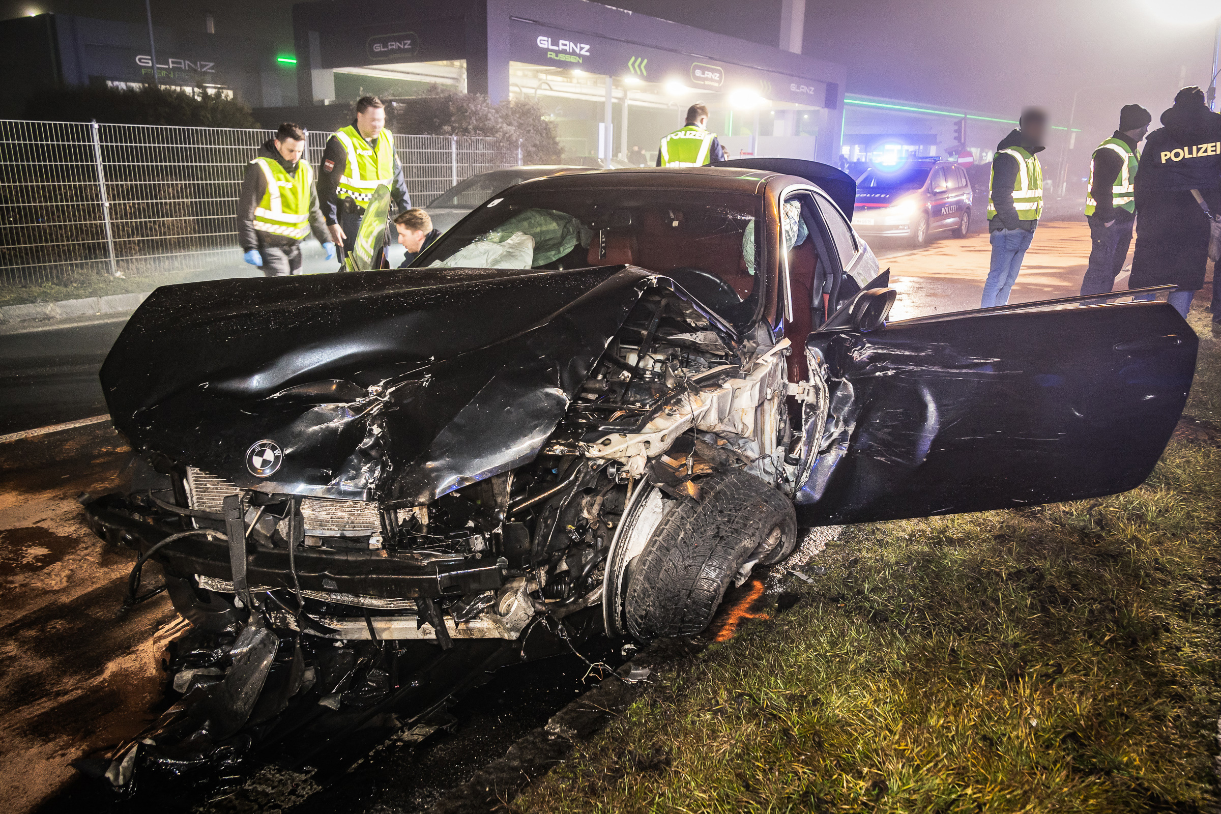 Als ihn die Polizei aufhalten wollte, weil er eine Sperrlinie überfahren hatte, flüchtete er. Es folgte eine - so der Staatsanwalt - "Amokfahrt" durch den nächtlichen, nebeligen Zentralraum. Der Angeklagte habe rote Ampeln, Sperrlinien und -flächen überfahren, am Pannenstreifen überholt, alles mit extrem überhöhter Geschwindigkeit, teils mit über 200 km/h, einmal kollidierte er mit einem Lkw-Anhänger. Nach 30 Kilometern krachte er in eine Straßensperre der Polizei an der Trauner Kreuzung, was mehrere Verletzte forderte, darunter seine Freundin und Polizisten.
