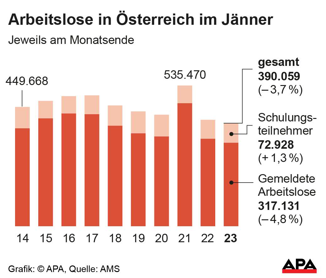 Österreich: 390.059 Menschen Ende Jänner ohne Job