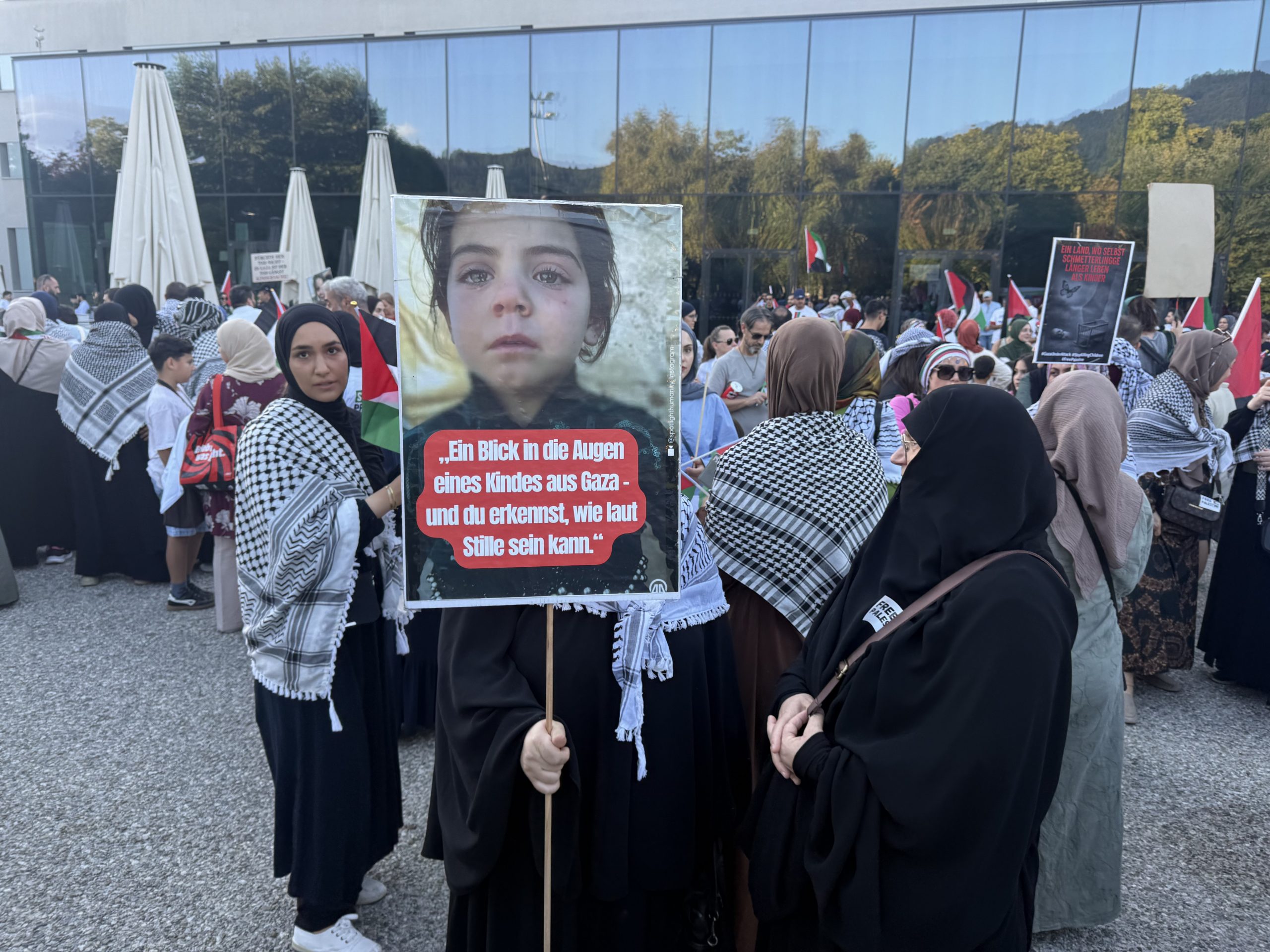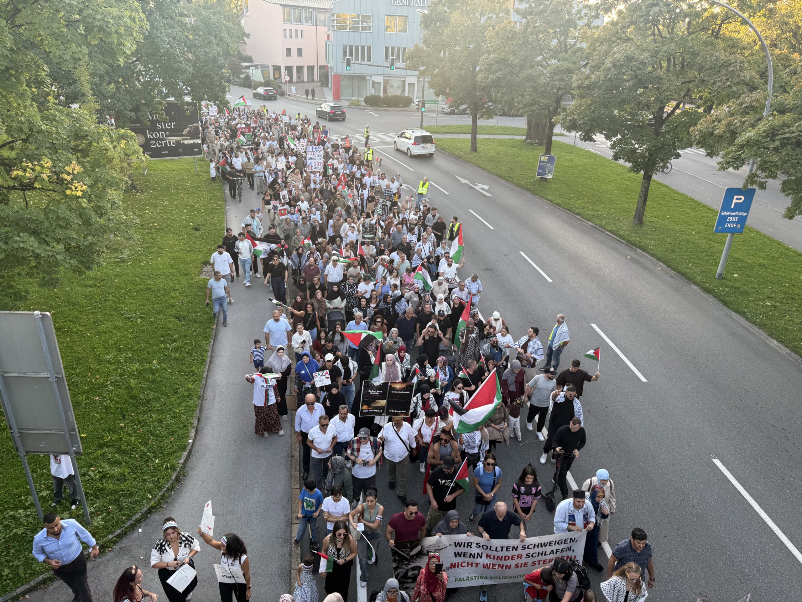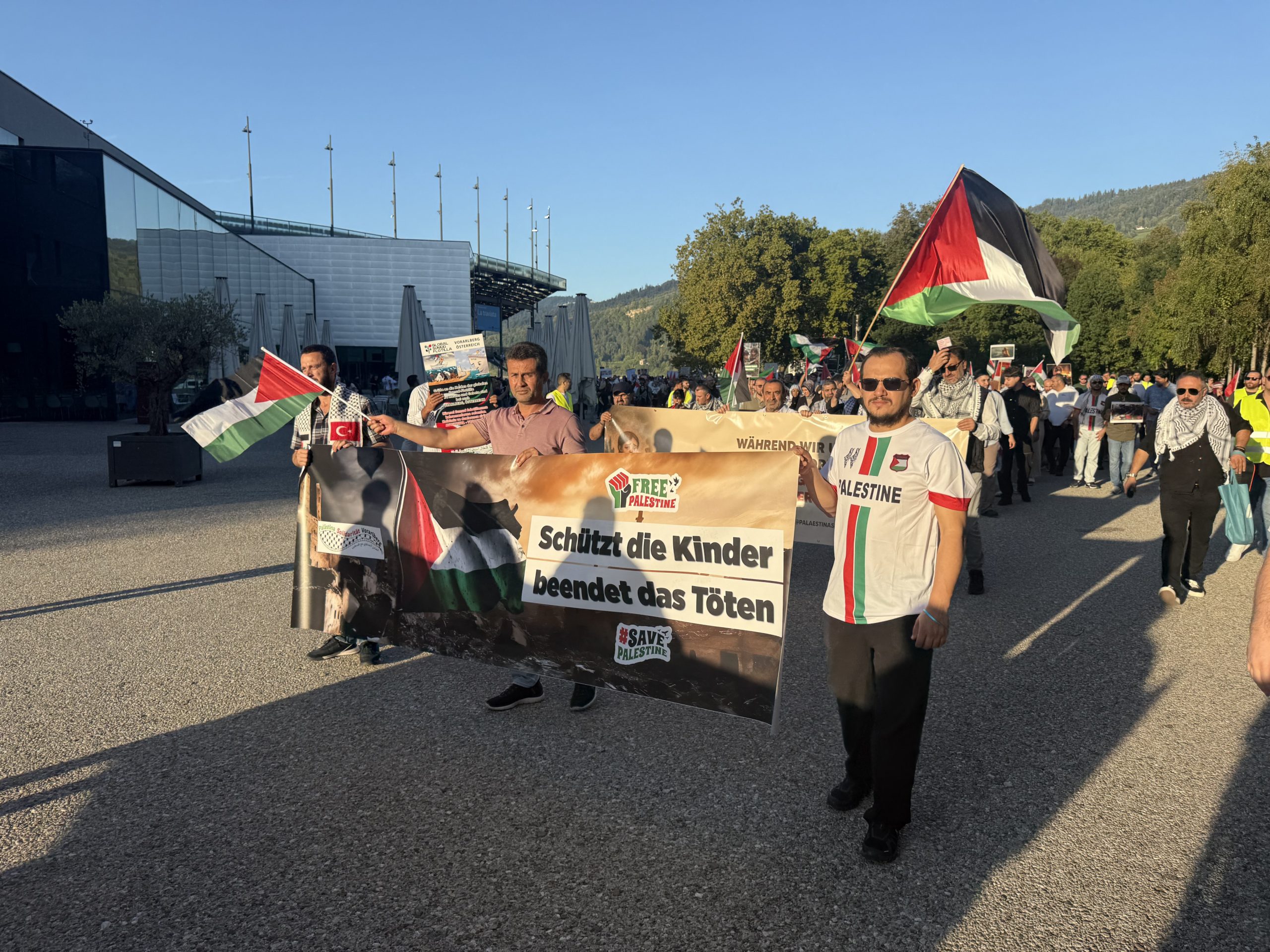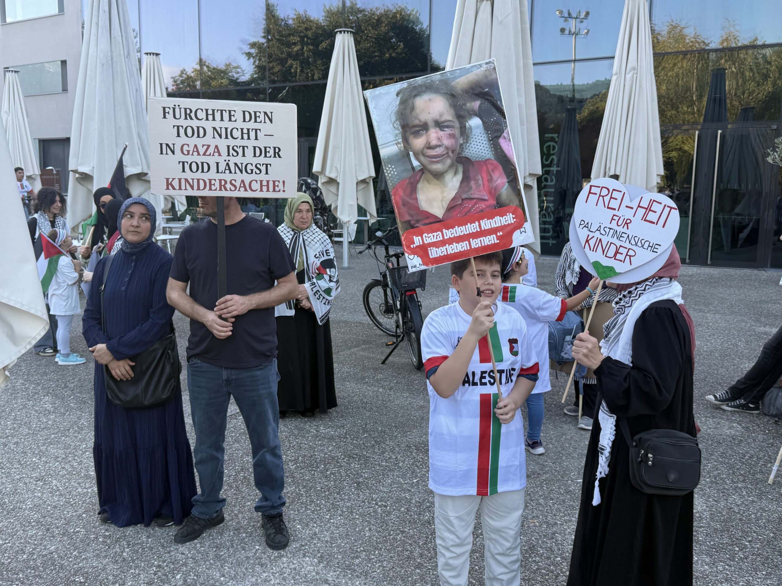 Über 500 Teilnehmer versammelten sich am frühen Abend in der Bregenzer Innenstadt, um Solidarität mit der palästinensischen Bevölkerung zu zeigen.