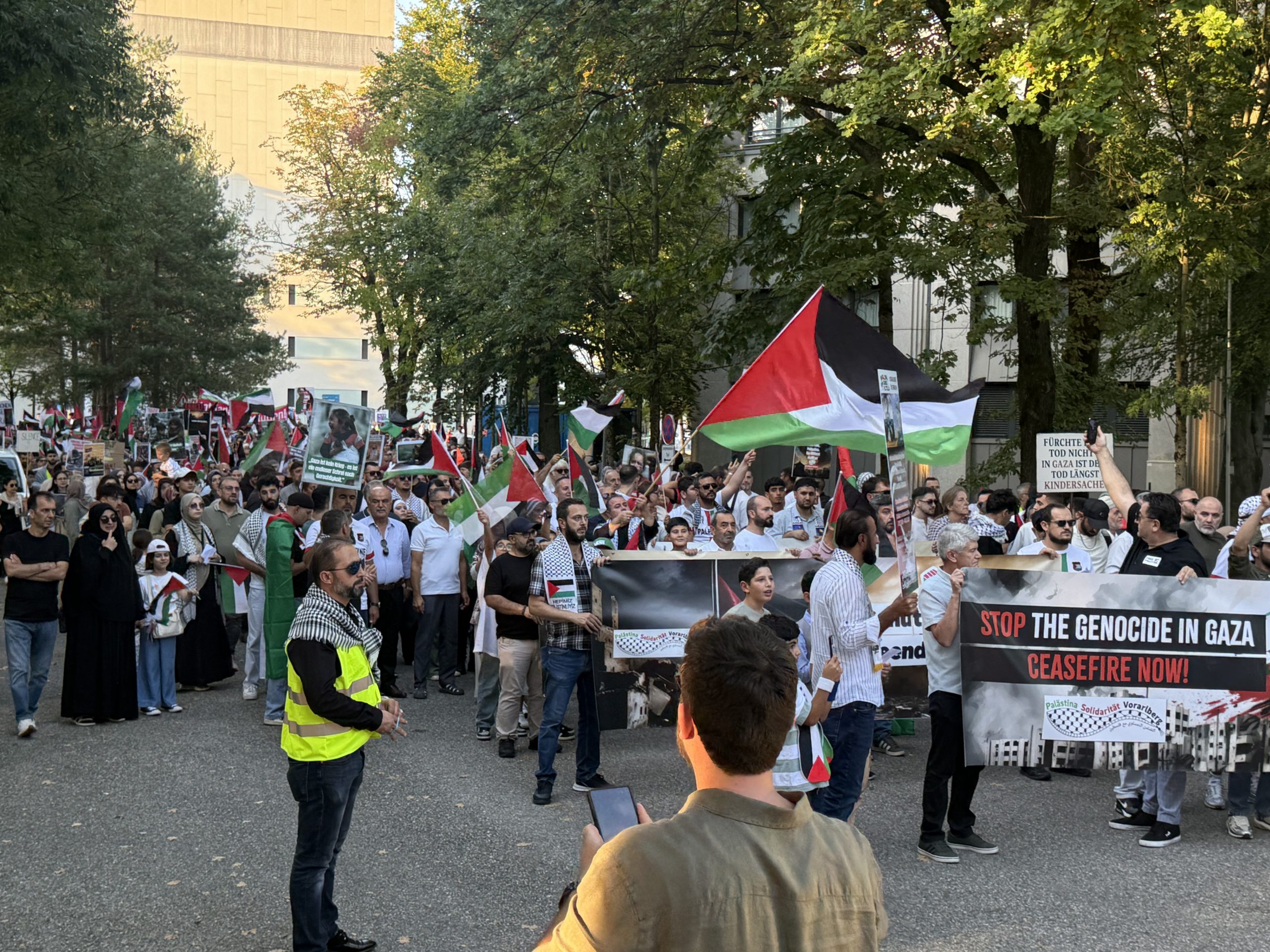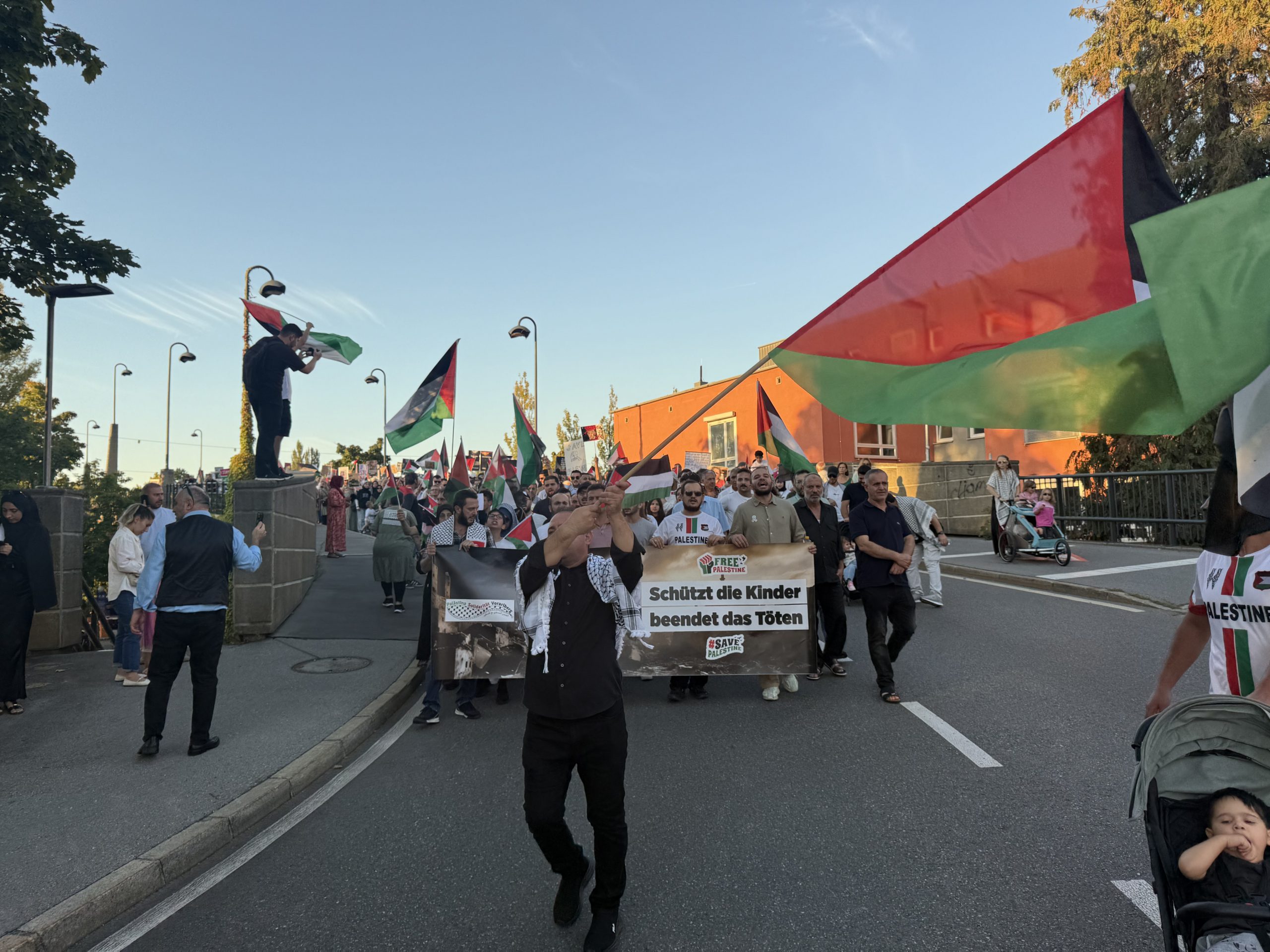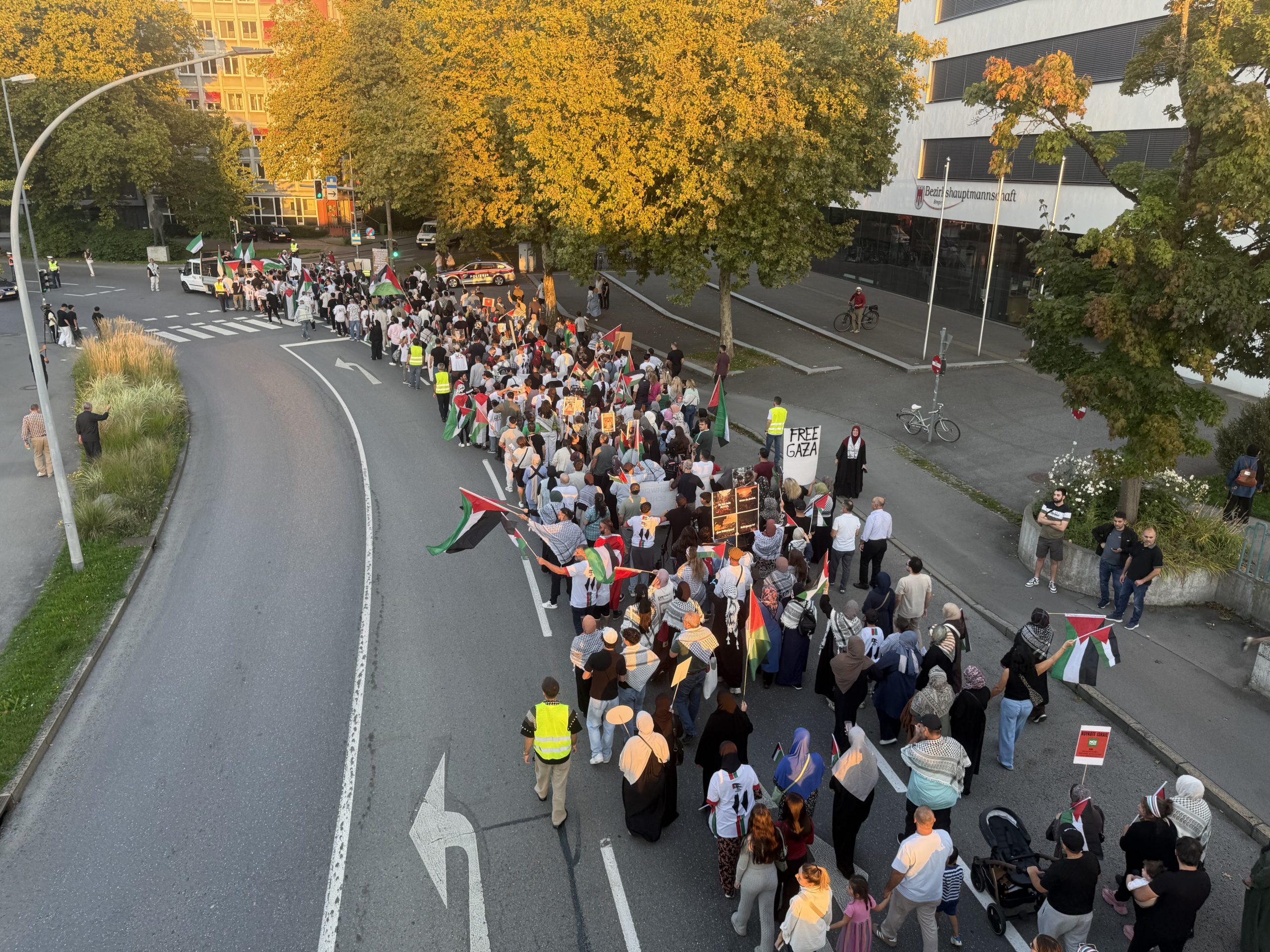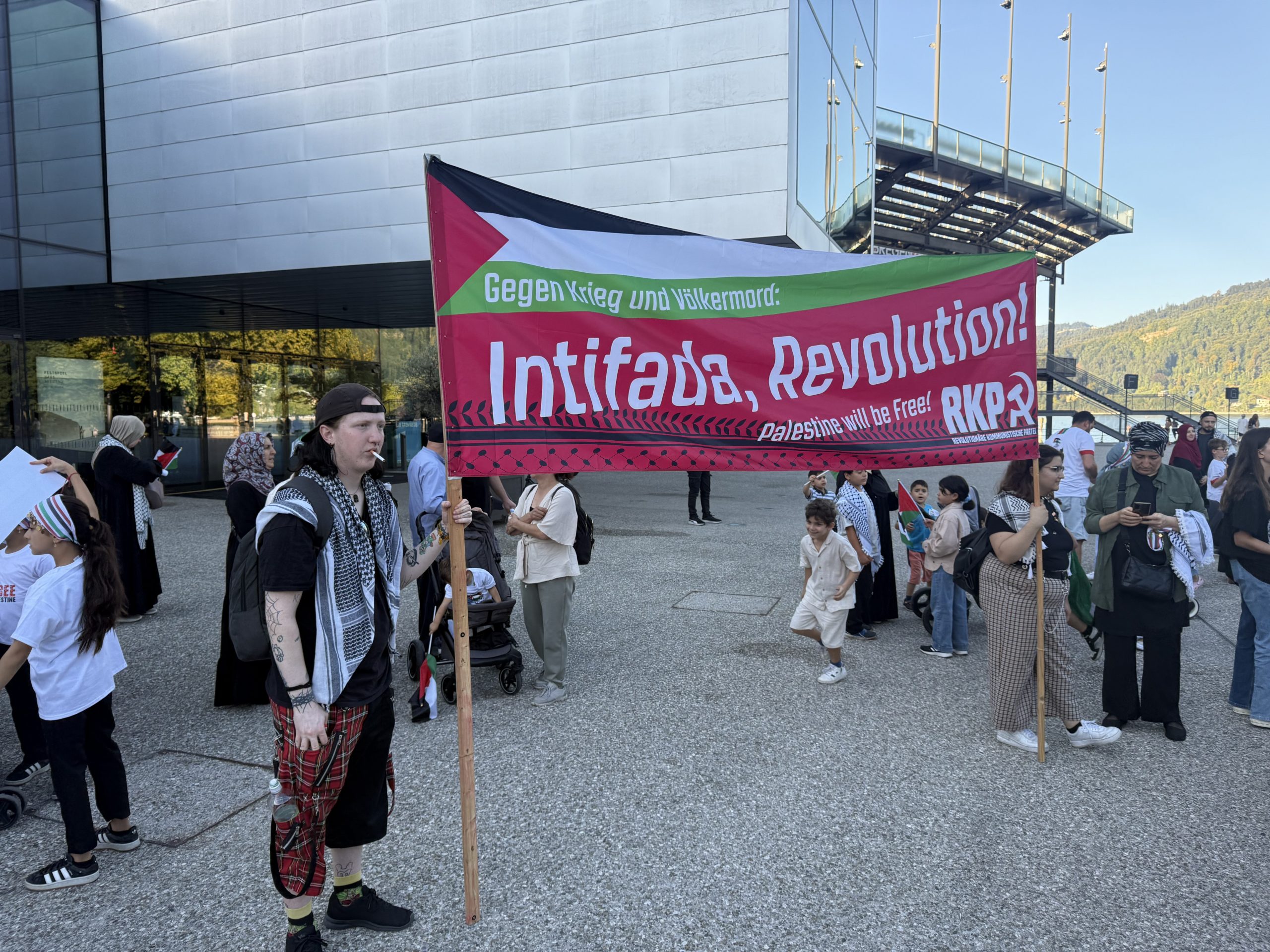 Über 500 Teilnehmer versammelten sich am frühen Abend in der Bregenzer Innenstadt, um Solidarität mit der palästinensischen Bevölkerung zu zeigen.