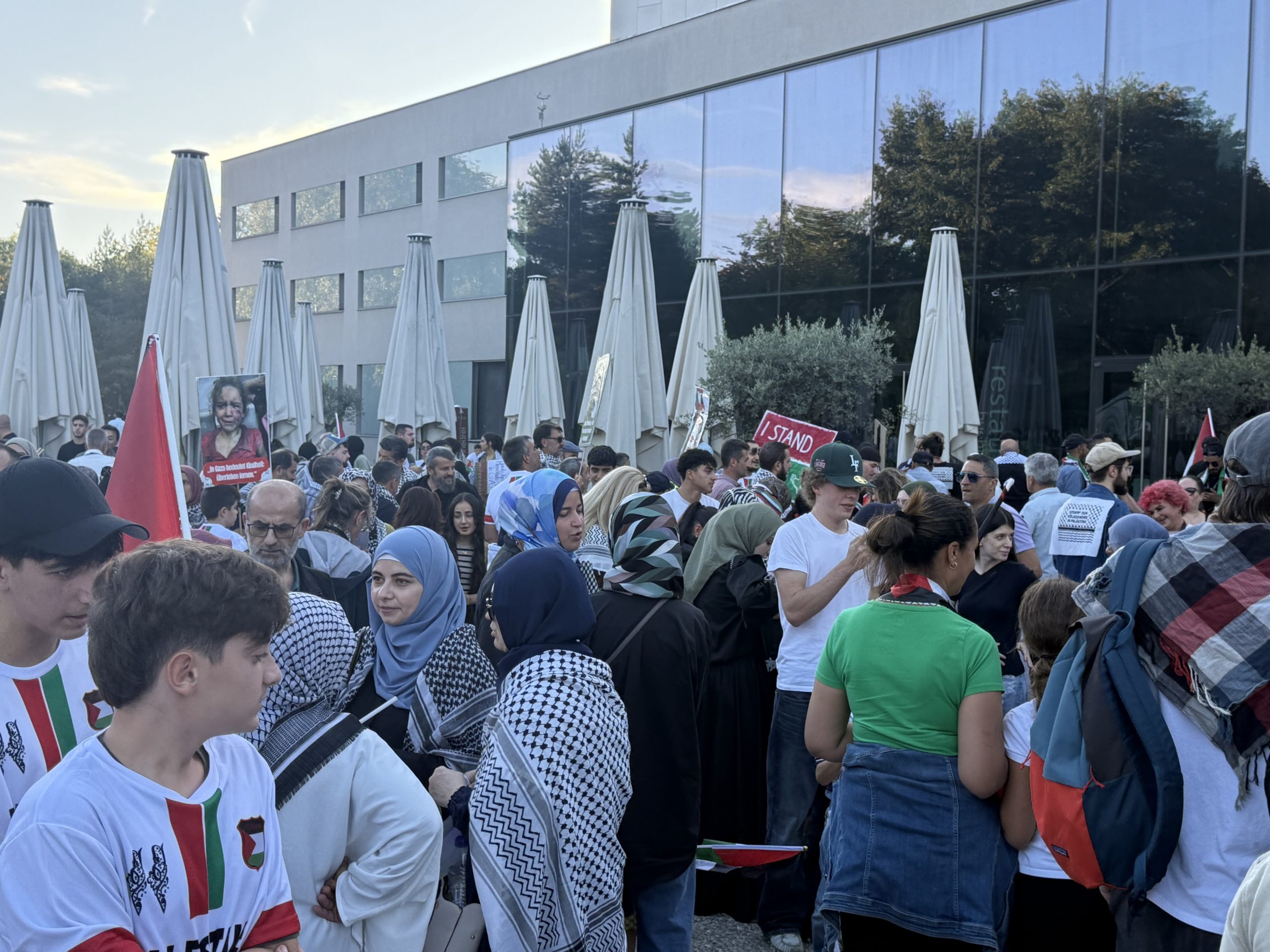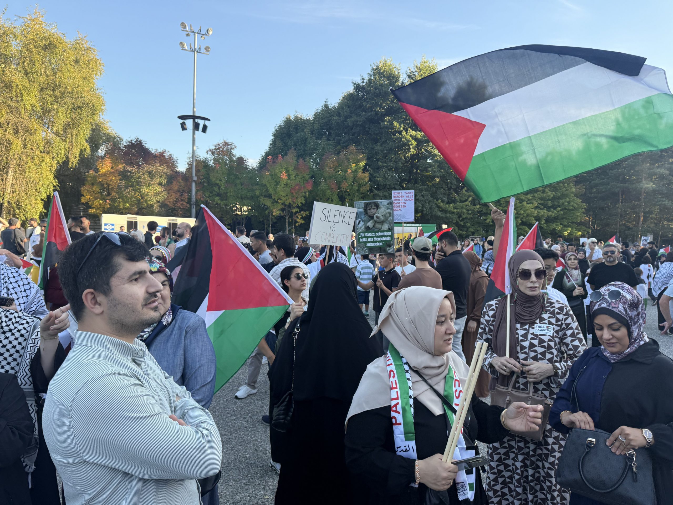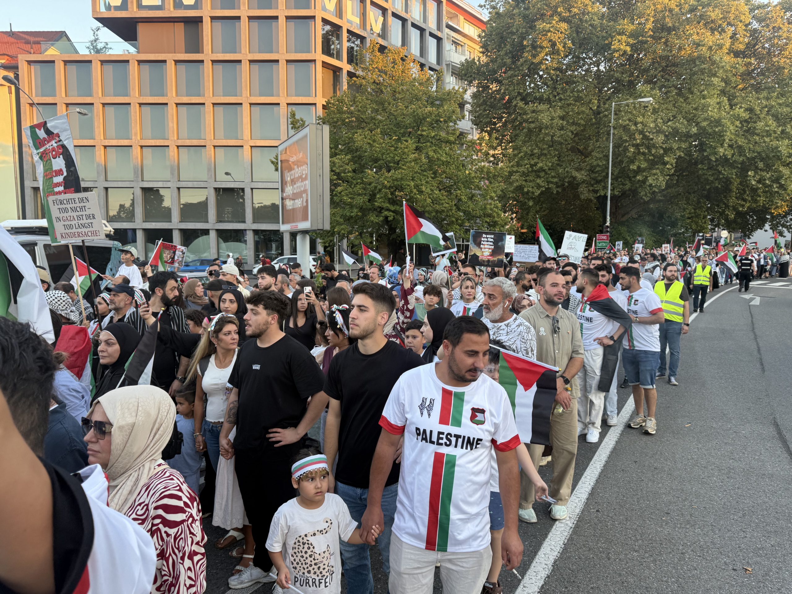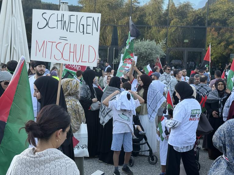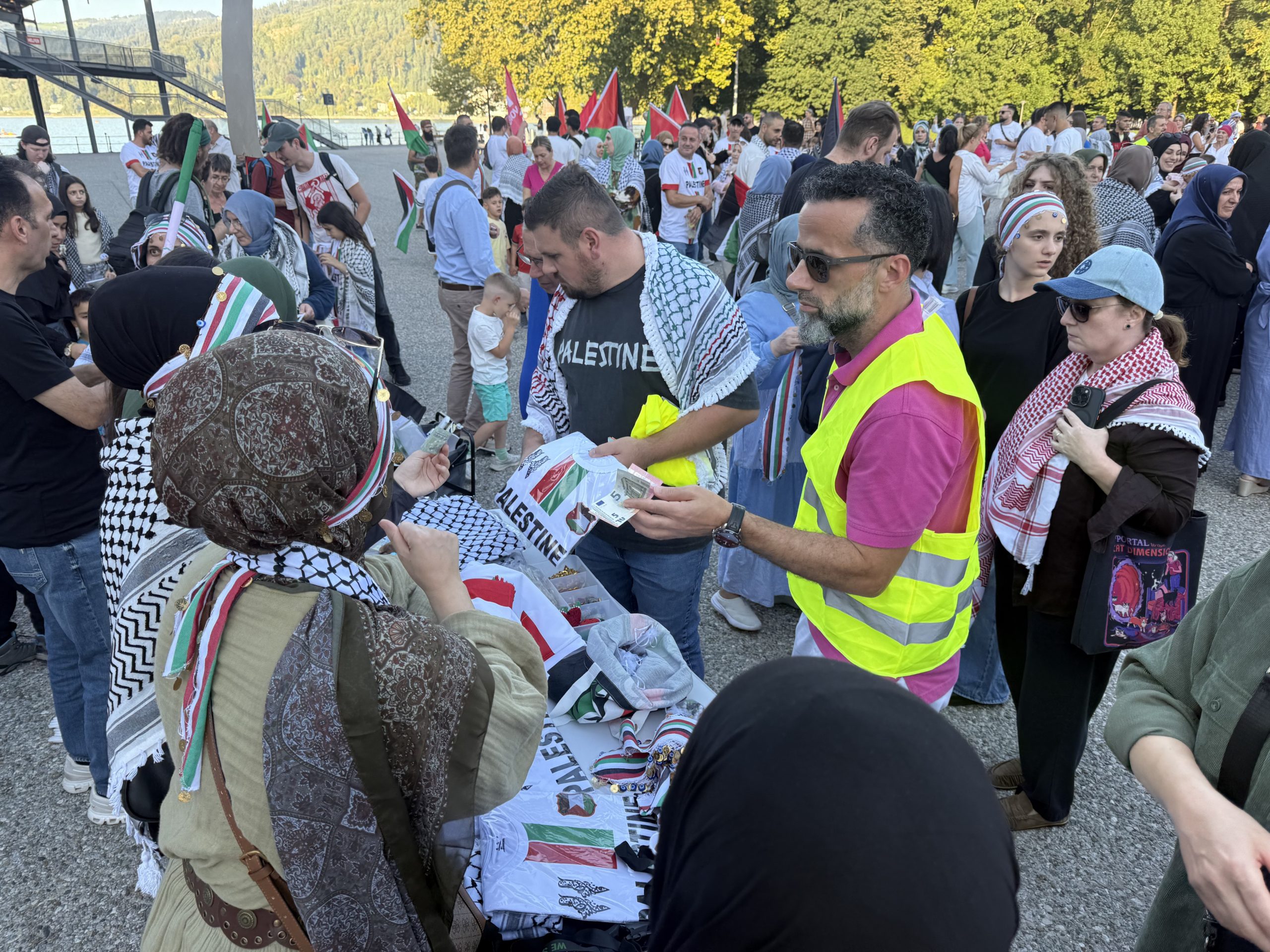 Über 500 Teilnehmer versammelten sich am frühen Abend in der Bregenzer Innenstadt, um Solidarität mit der palästinensischen Bevölkerung zu zeigen.