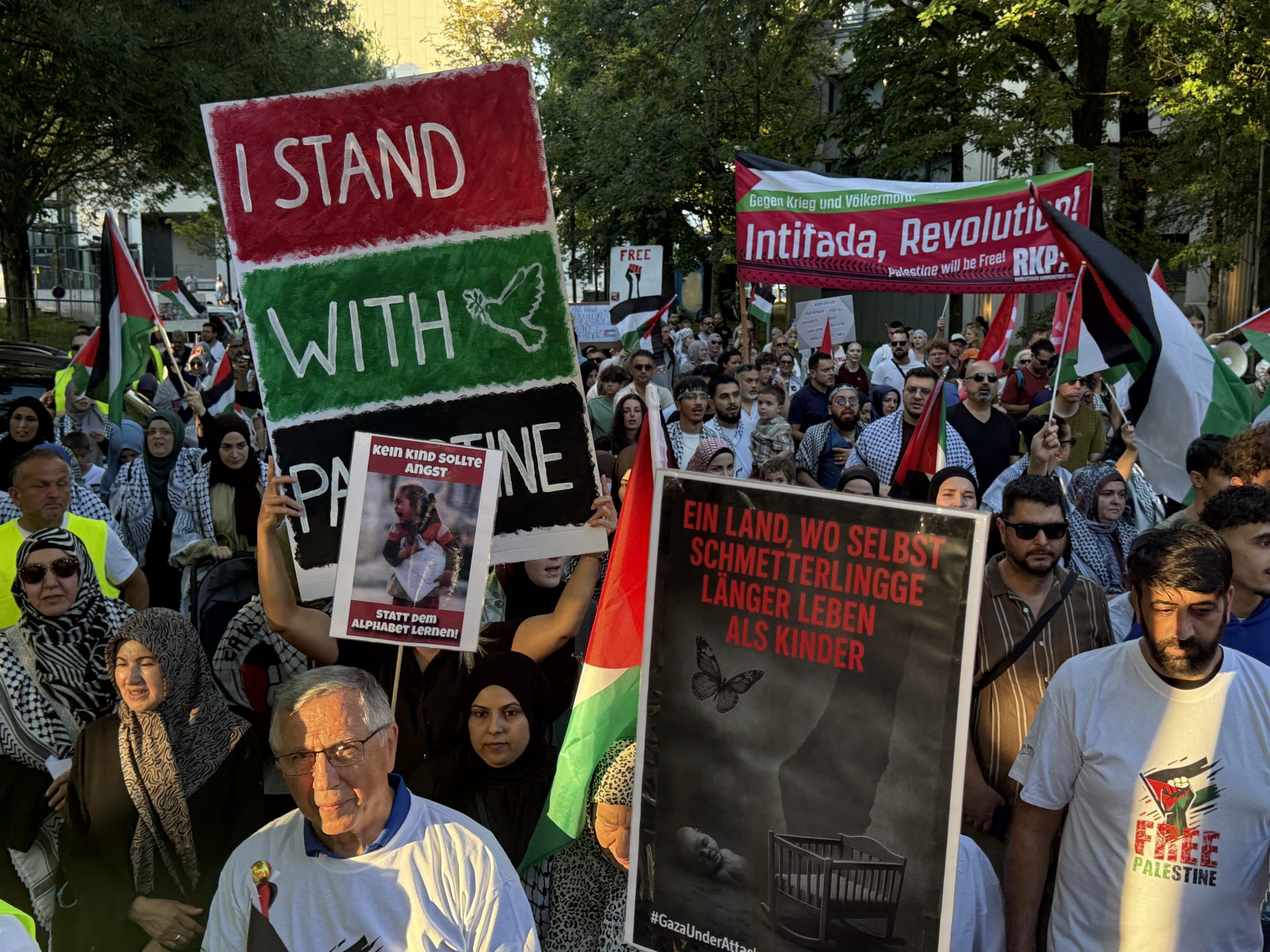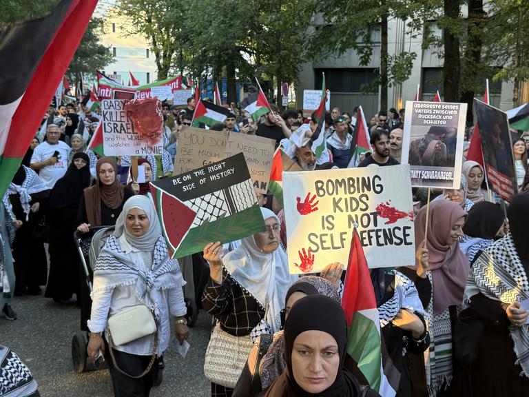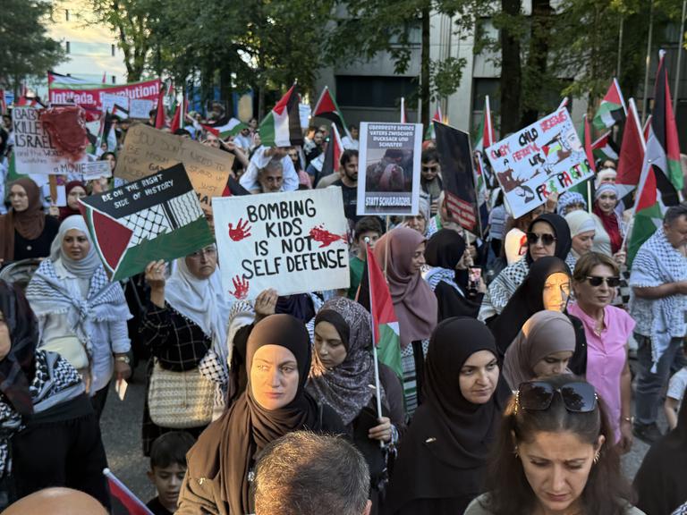 Die Demonstranten forderten ein Ende der israelischen Offensive sowie gezielte Sanktionen gegen die israelische Regierung.