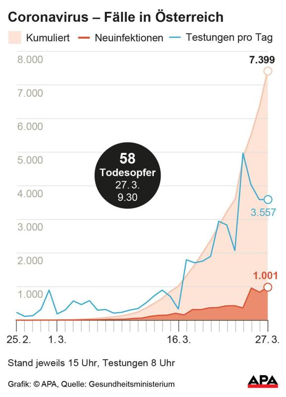 58 Tote waren zu diesem Zeitpunkt offiziell aufgrund des Virus gestorben. Die meisten Toten sind in Wien (16), Niederösterreich und in der Steiermark (je 13) zu beklagen, wie aus den Zahlen des Ministeriums vom Freitag hervorgeht.