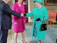 Königin Elizabeth II. (85) landete mit ihrer Maschine am Flughafen in Dublin, wo sie mit militärischen Ehren empfangen wurde. Sie wird von Prinzgemahl Philip, Herzog von Edinburgh, begleitet. Beim Empfang im Amtssitz der irischen Präsidentin Mary McAleese gab es zwischen den beiden Staatsoberhäuptern Händeschütteln “auf Augenhöhe”. Premierminister Enda Kenny sah der Queen in die Augen und drückte für die Fotografen extra lang ihre Hand. Der Verzicht auf die Verbeugung zeige den Premier und die Queen als “Gleiche, die sich gegenüberstehen”, hieß es im Kommentar des Senders BBC. Auf keinen Fall solle der Eindruck entstehen, es träfen sich “Herrscher und Untertan”.