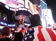Als die Nachricht am Sonntagabend kurz vor 23.00 Uhr Ortszeit vom Nachrichtensender CNN verkündet wird, bricht im New Yorker Broadway-Restaurant Junior’s spontaner Jubel aus. Kurz danach fährt auf dem nahe gelegenen Times Square ein großer Feuerwehrwagen vor – die Atmosphäre wird beinahe hysterisch, denn die Feuerwehrleute gelten in der Stadt seit dem Anschlägen vom 11. September in den USA als Helden.
