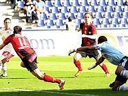 Der ÖFB-Teamtürmer fand auch die einzigen Großchancen der schwachen Bullen vor. Wallners Drehschuss im Strafraum klärte der Ex-Salzburger Rene Aufhauser aber vor der Linie (5.). Ein leicht abgefälschter Schuss des Angreifers wurde zur Beute von LASK-Torhüter Mandl (19.). Die Salzburger hatten zwar mehr vom Spiel, Zwingendes war aber nur selten dabei. Dabei hatte Moniz seine Philosophie so erklärt: “Im Fußball geht es darum, Torchancen zu kreieren.”