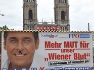Kaum waren die Plakate mit den umstrittenen Slogans am Montag Morgen aufgehängt worden, waren sie bereits übermalt. Dem FP-Chef wurde dabei ein Hitler-Bärtchen verpasst. Auch der Spruch wurde ausgebessert. So wurde der Slogan “Zuviel Fremdes tut niemanden gut” in “Zuviel tut niemand gut” geändert. Im Internet sammelten sich unter der Facebookgruppe “Wiener Blut gegen das blaue Wiener Blut” hunderte Unterstützer.