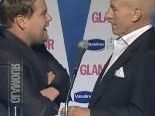 Corden, von Stewarts Worten sichtlich überrascht und getroffen, trat daraufhin selbst ans Rednerpult und entschuldigte sich dafür, falls tatsächlich jemand von ihm diesen Eindruck gewonnen haben sollte. Dann ging er zum Gegenschlag über: “Wenn man auf die Bühne kommt, um einen Preis zu überreichen, dann sollte man das auch verdammt noch einmal tun! Eine Aufforderung, die bei Sir Patrick allerdings auf taube Ohren stieß – er kritisierte nun, dass Cordens Bauch unter seinem Hemd hervorgeschaut hätte!