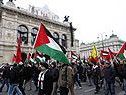 Um 14.30 Uhr begann die polizeilich angemeldete Demonstration gegen die israelische Militäroffensive auf dem Herbert-von-Karajan-Platz bei der Staatsoper unter lauten Sprechchören, wie “Israel Terrorist” oder “Freiheit, Freiheit für Palästina”. Transparente mit der Aufschrift “Freiheit für Gaza. Freiheit für Palästina”, “Stoppt das Massaker in Gaza” und zahlreiche palästinensische Flaggen wurden mitgetragen.