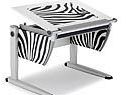 Wie beim Handy sollen die neuen Schreibtische auch schnell Farbe und Muster wechseln können: Mit Designsets können alle moll Schreibtische mit eigenen Motiven aufgepeppt werden. Surfer oder Zebramuster, Blümchen oder Fantasy. Entsprechende ”Pads” werden einfach auf Tischplatte und Seitenwände aufgelegt und festgedrückt und können jederzeit wieder gewechselt werden.