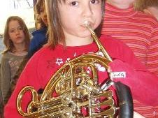 Beim Spielen der Blechblasinstrumente simulierten die Kinder