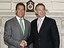 Thema ihrer Beratungen war am Dienstag der Kampf gegen den Klimawandel. Schwarzenegger lobte, Blair habe der Welt gezeigt, dass es möglich sei, Ökonomie und Ökologie miteinander zu verbinden. Blair übergibt am (morgigen) Mittwoch sein Amt an den bisherigen Schatzkanzler Gordon Brown.
