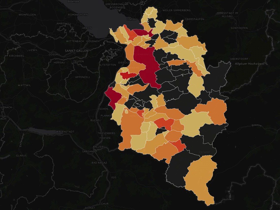 * Anm.: Gemäß der offiziellen Kommunikation des Landes sind aktuell in 62 Gemeinden Flüchtlinge untergebracht. Allerdings finden sich in der Liste Zahlen für Feldkirch und Feldkirch-Gisingen sowie zweimal für Nenzing – wir haben diese jeweils zusammengeführt.