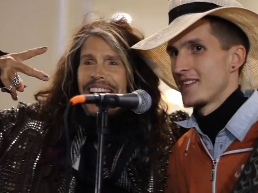 Damit hat der junge Straßenmusiker nicht gerechnet: Während er in Moskau "I Don't Want To Miss A Thing" von Aerosmith zum Besten gibt, löst sich aus der Zuschauermenge plötzlich ein langhaariger Kerl und gesellt sich zu ihm - und zwar Steven Tyler höchstpersönlich!