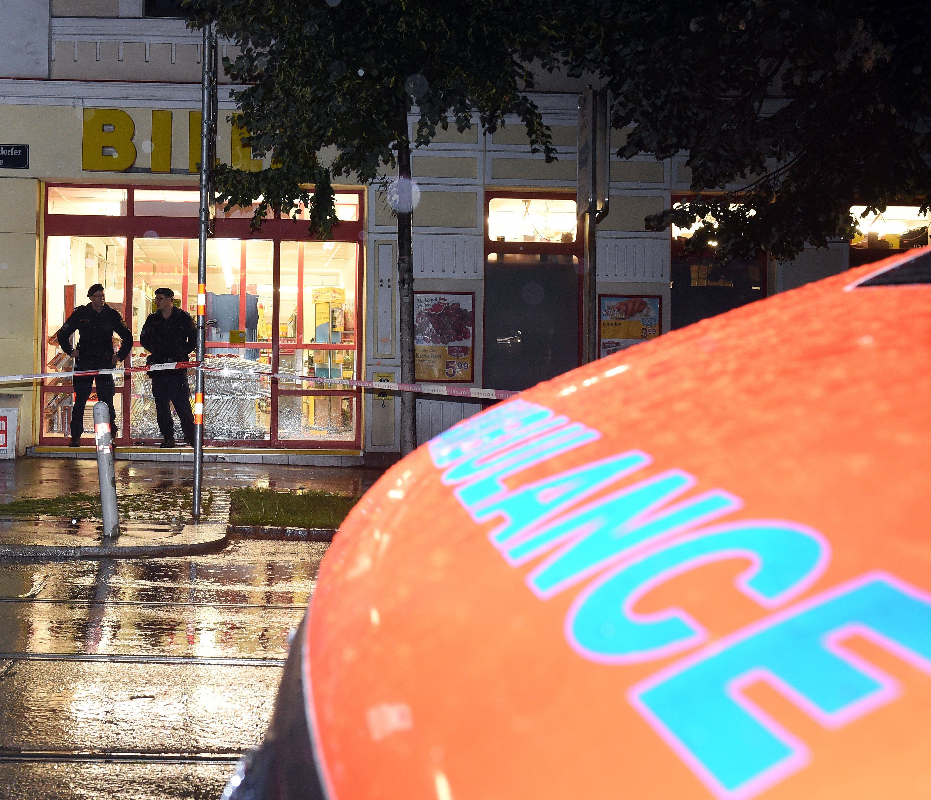 Der 49-jährige Räuber hatte am Samstag kaltblütig auf Polizeibeamte geschossen, als diese an der Hintertür der Billa-Filiale auf der Hütteldorfer Straße klopften, in der zuvor der Täter drei Angestellte gefesselt hatte. Der 23 Jahre alte, erst vor wenigen Wochen in den Exekutivdienst übernommene Beamte wurde am Kopf getroffen und letztlich tödlich verletzt, ein 25-jähriger Polizeischüler im Bauch- und Oberschenkelbereich. Die WEGA (Wiener Einsatzgruppe Alarmabteilung) spürte schließlich den Räuber auf, der sich in dem Gebäudekomplex verschanzt hatte. Der Mann eröffnete ein zweites Mal das Feuer, worauf er von der Sondereinheit erschossen wurde.