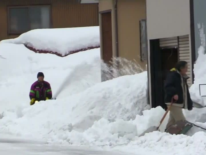 Hoch türmt sich der Schnee auf den Dächern im japanischen Uonuma. Im Norden Japans hat so viel geschneit wie seit Jahren nicht mehr, eine Kaltfront hat die Region fest im Griff.