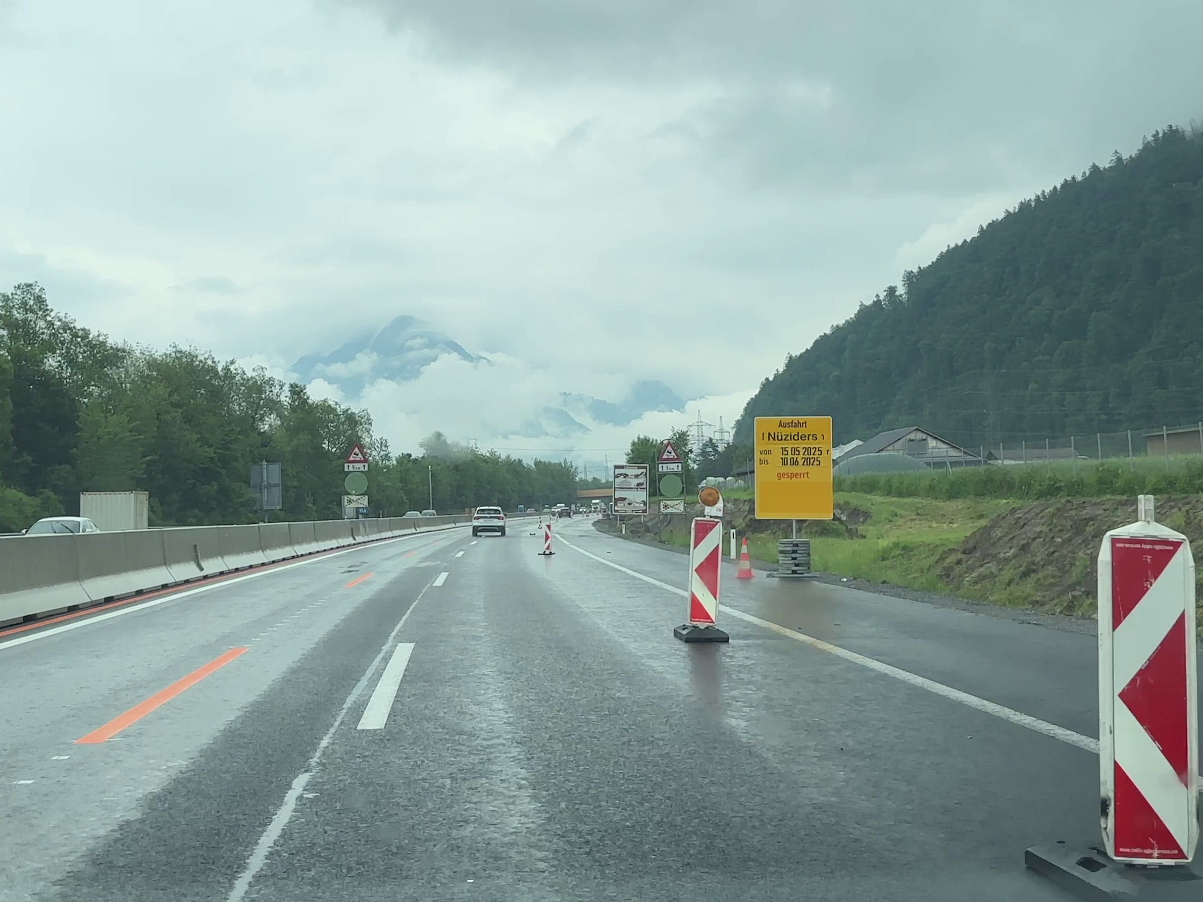 - 11. Juni 2025 bis 20. Juni 2025: Sperre der Auffahrt Richtung Innsbruck bei Anschlussstelle Bludenz-Nüziders. Umleitung über das Stadtgebiet Bludenz zur Anschlussstelle Bludenz-Bürs.