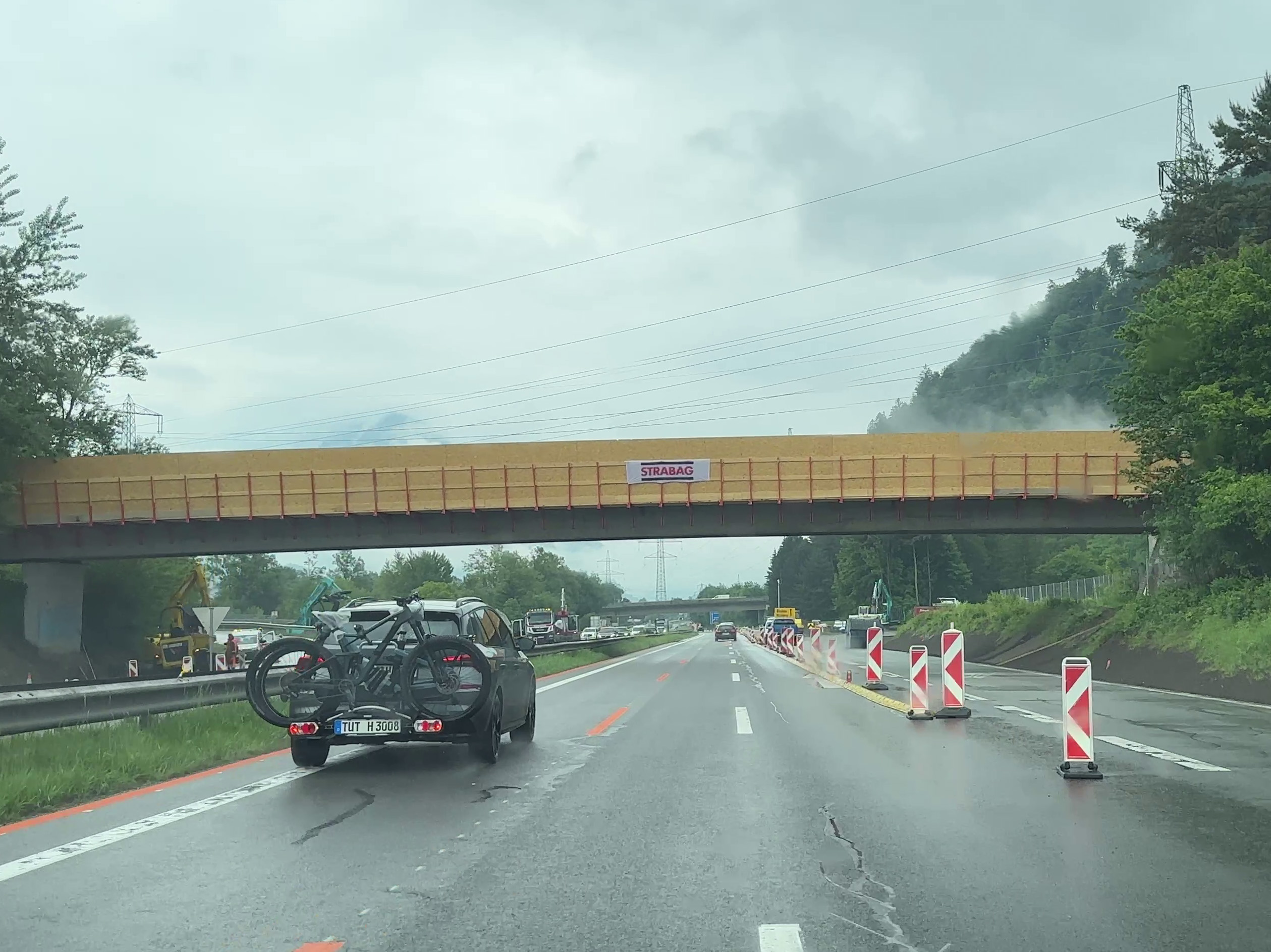 Eine Brücke über die Autobahn bei Nüziders ist aktuell gesperrt. Der Radweg unter der Brücke ist nicht mehr benutzbar. Auch Autofahrer müssen teils ausweichen, da eine Anschlussstelle gesperrt ist.