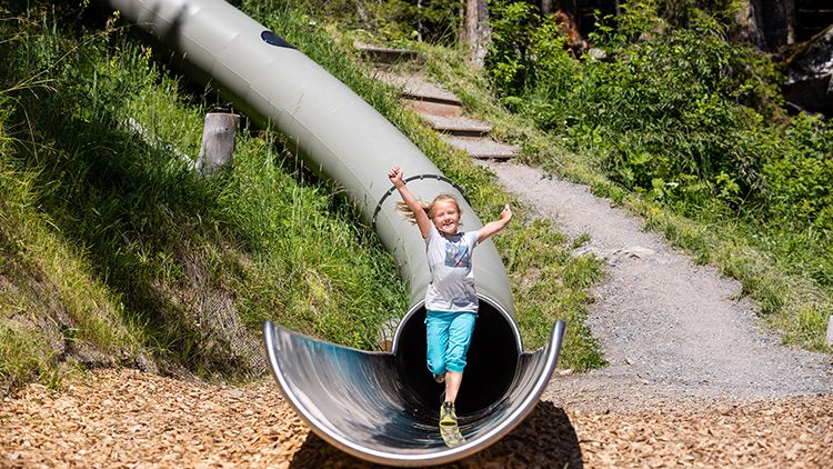Weiter Richtung Tal geht’s im Waldrutschenpark-Golm. 7 unterschiedliche Rutschen und ein neu angelegter 3 km langer Wanderweg führen von Matschwitz nach Latschau. Die Waldrutschen mit einem Durchmesser von 80 cm verkürzen somit den Weg ins Tal und versprechen jede Menge Spaß beim Abwärtslaufen.