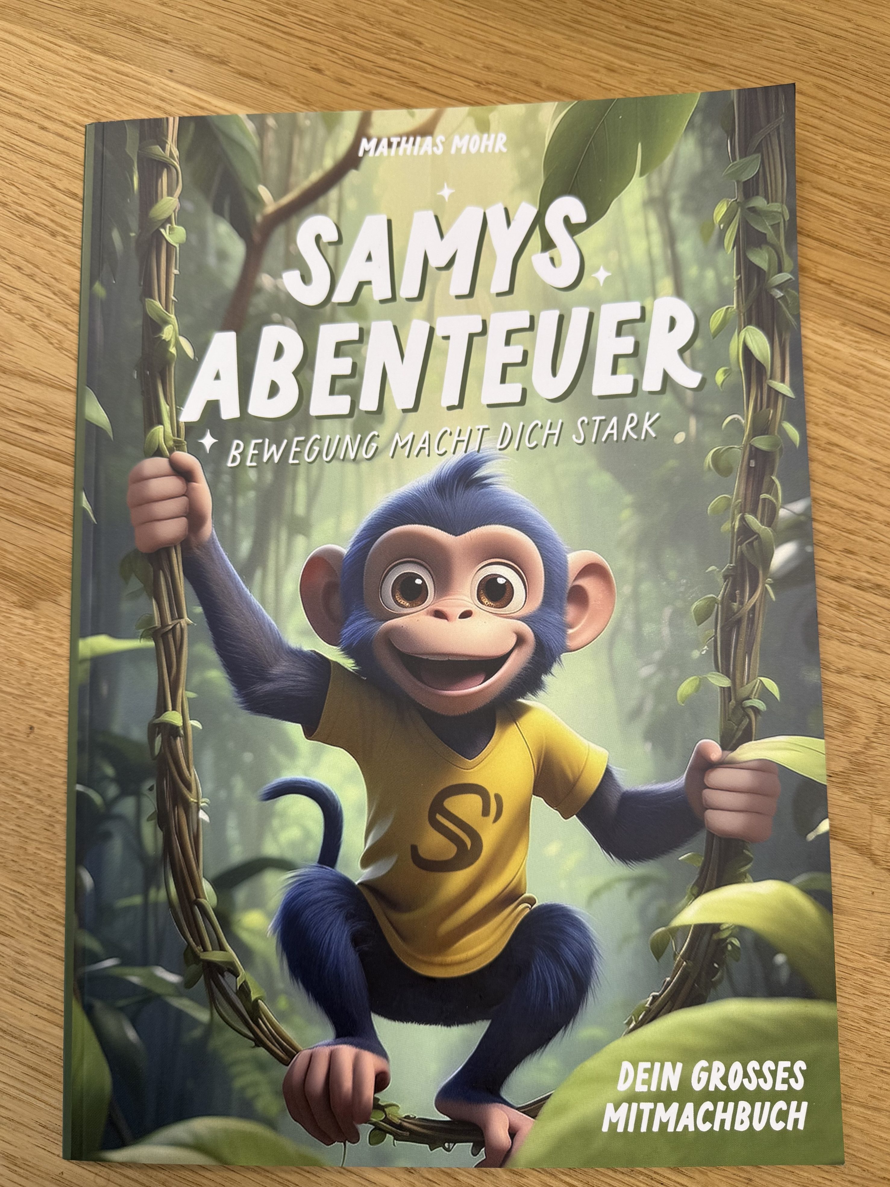 Im Zentrum steht sein Buch: "Samys Abenteuer". Hauptfigur ist ein kleiner Affe mit großen Zielen und vielen Hürden. "Samy steht für Eigenschaften wie Mut, Ausdauer, Körperspannung und Gleichgewicht", erklärt Mohr. Eigenschaften, die im Kinderalltag oft untergehen. In jeder Geschichte lernt Samy etwas Neues und die Kinder mit ihm.