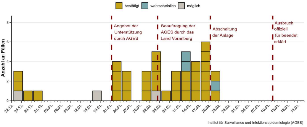 Die AGES hatte laut Bericht bereits im Jänner ein Hilfsangebot an die Bezirkshauptmannschaft Bregenz gerichtet, nachdem erste Fälle von Legionärskrankheit gemeldet worden waren. Das Angebot sei telefonisch und später schriftlich erfolgt, jedoch abgelehnt worden. Erst als die Infektionszahlen weiter anstiegen, wurde das Angebot Anfang Februar von der Landessanitätsdirektion angenommen.