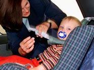 Das gleiche Szenario, ein Frontalzusammenstoß bei 64 km/h, wurde mehrmals durchgespielt. Zunächst wurde getestet, welche Folgen der Crash auf Kleinstkinder in rückwärtsgerichteten Babyschalen hat – mit aktiviertem bzw. deaktiviertem Airbag. Ergebnis: Bei deaktiviertem Airbag ist das Kind in der Babyschale so gut geschützt, dass es bei einem Zusammenstoß nahezu unverletzt bleibt.