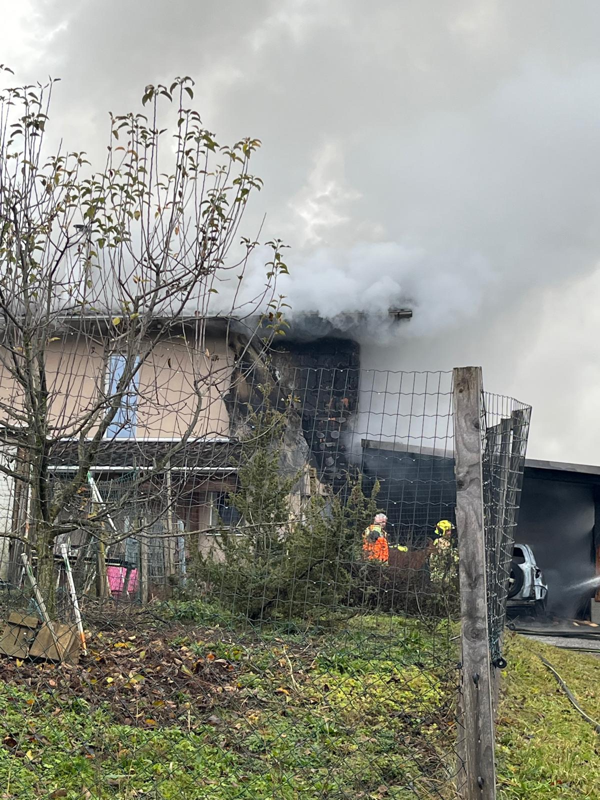 Kurz darauf griff das Feuer auch auf das Auto über. Beim Eintreffen der Einsatzkräfte standen sowohl der Carport als auch beide Fahrzeuge in Flammen. Rauch trat zu diesem Zeitpunkt bereits aus dem Dachstuhl des Hauses aus.