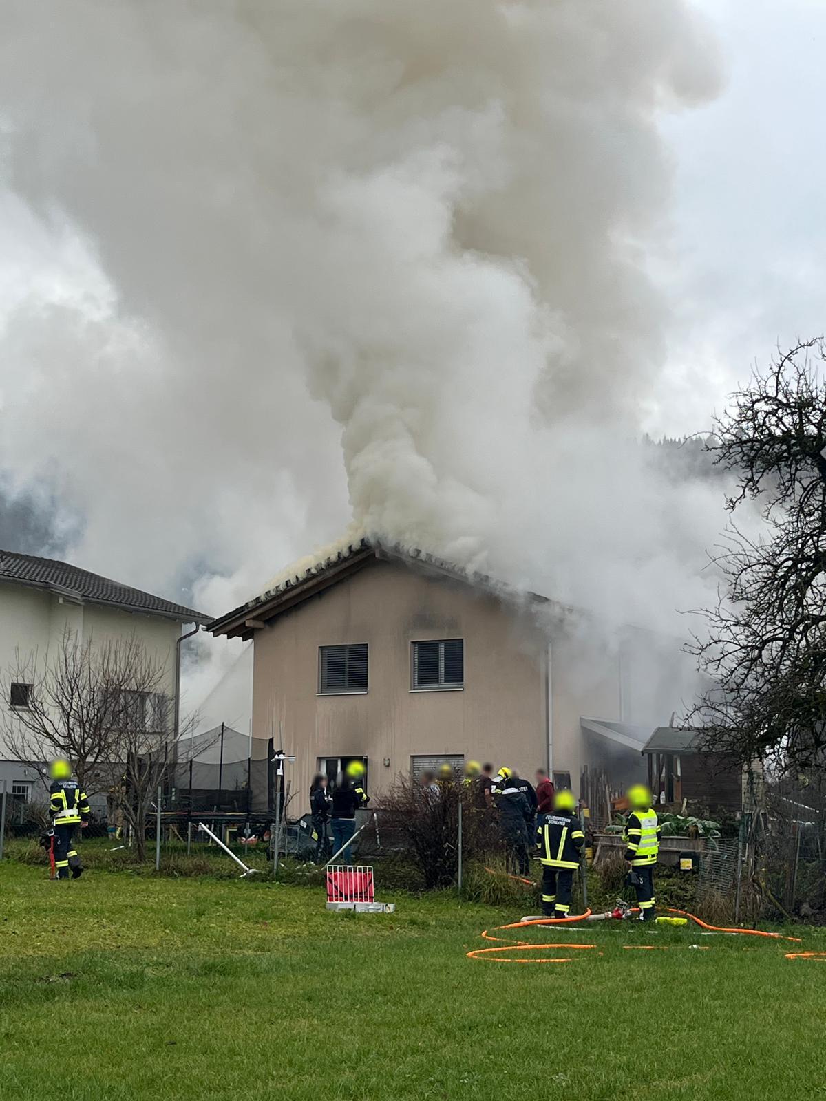 Laut Feuerwehr-Einsatzleiter Ricky Buschenreithner läuft der Löscheinsatz aktuell noch, eine Person wurde leicht verletzt. Der Brand soll im Bereich des Carports ausgebrochen sein. Das Haus ist daraufhin in Vollbrand geraten.